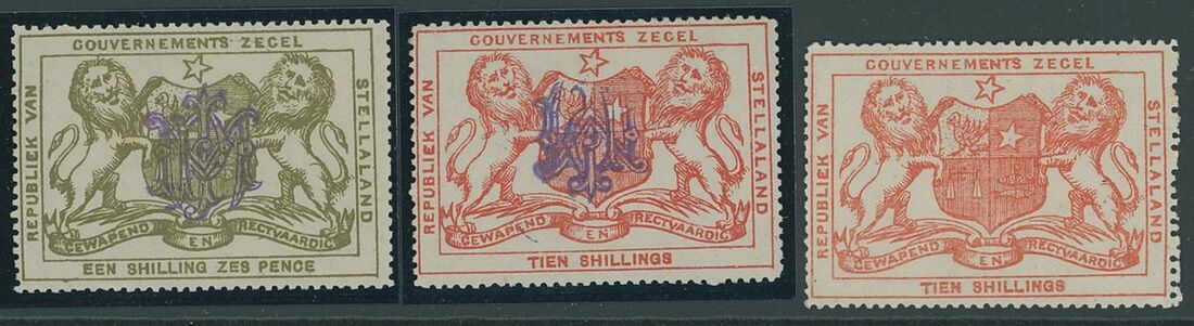 Revenue Stamps: 1884 1/6d. olive grey and 1-/- vermilion and 1886 10/- vermilion, all unused with gum, generally good to fine. Barefoot 3, 7, 16