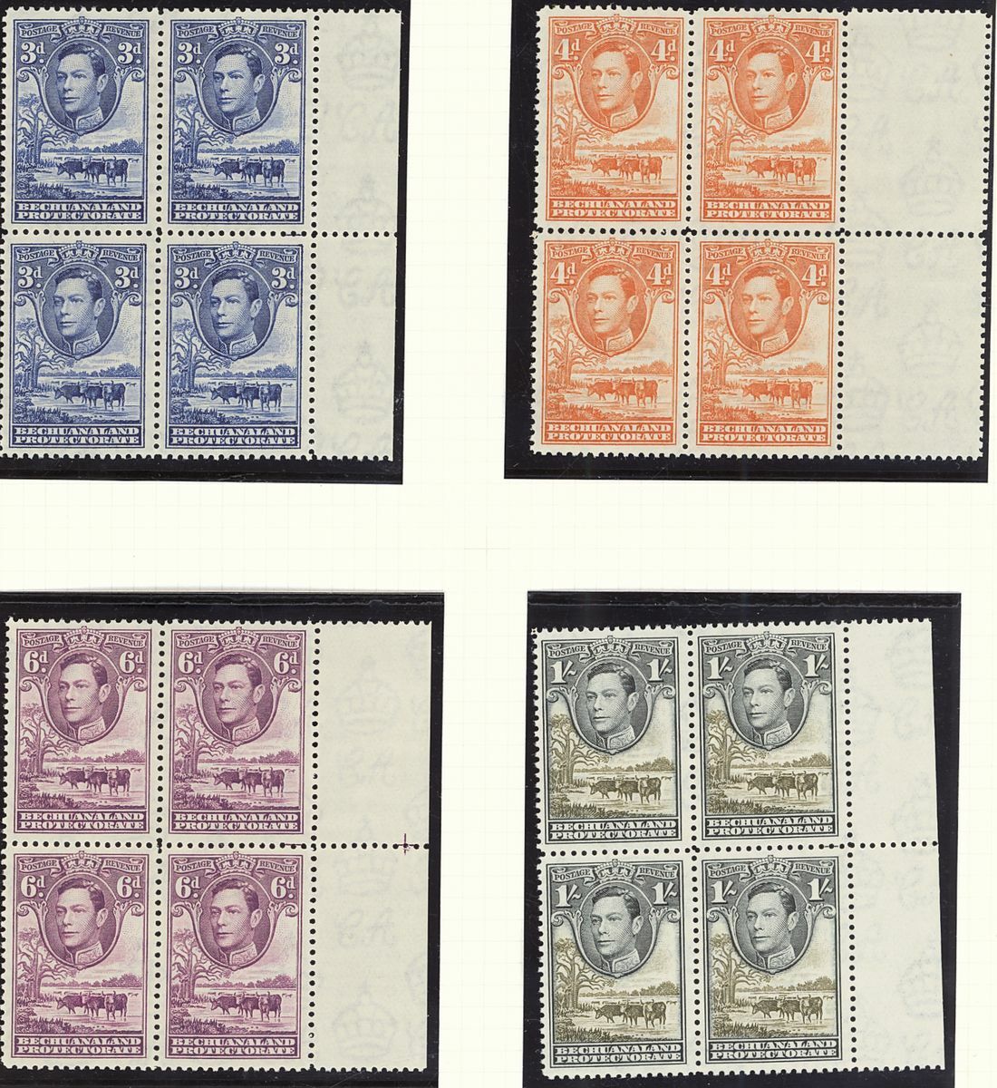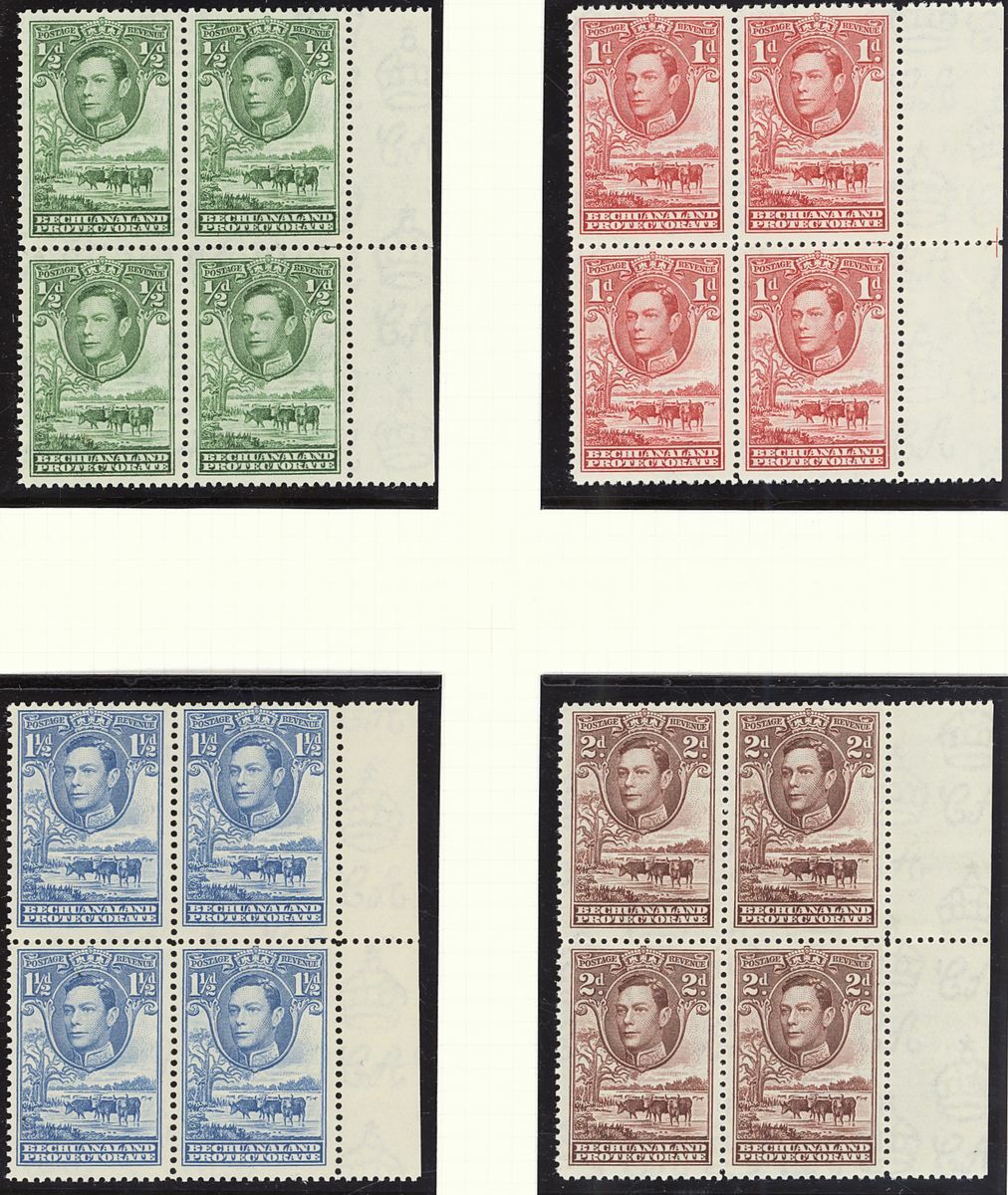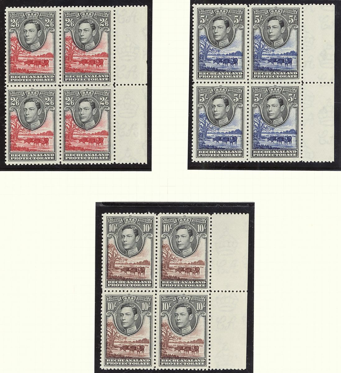1938-52 ½d. to 10/- set of eleven in right marginal blocks of four, fine unmounted mint. S.G. 118-128, £440+