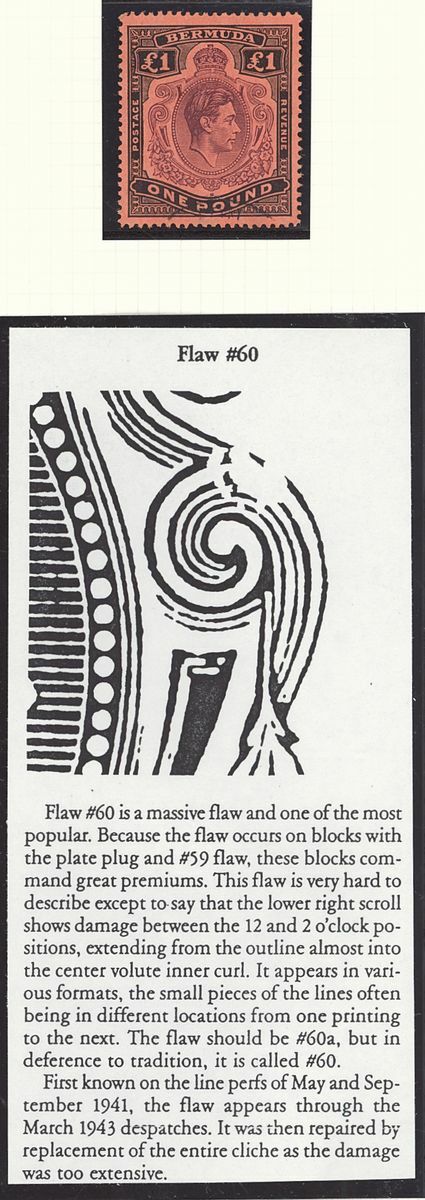 1938-52 £1 pale purple and black on pale red, variety broken lower right scroll (HPF60), used by small part of c.d.s. leaving clear the variety. Fine and scarce. S.G. 121be, £1,500.