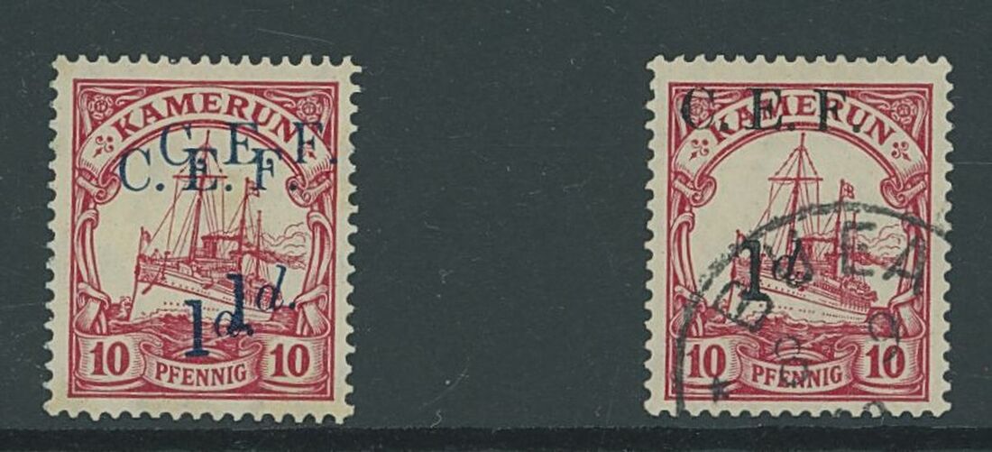 1915 1d. on 10pf. carmine a mint example with variety surch. double and a used example with surch. in black. A fine duo. S.G. B3b, B3e, £480