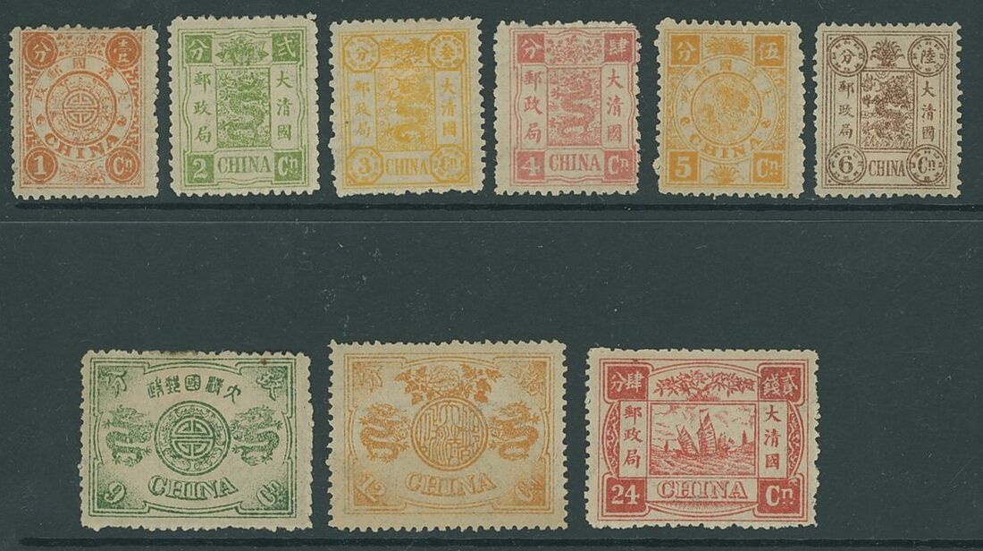 1897 Dowager Empress, First Printing, 1ca. to 24ca. set of nine, part to large part of original gum, fresh colours, generally fine. S.G. 16-24, Chan 22-30