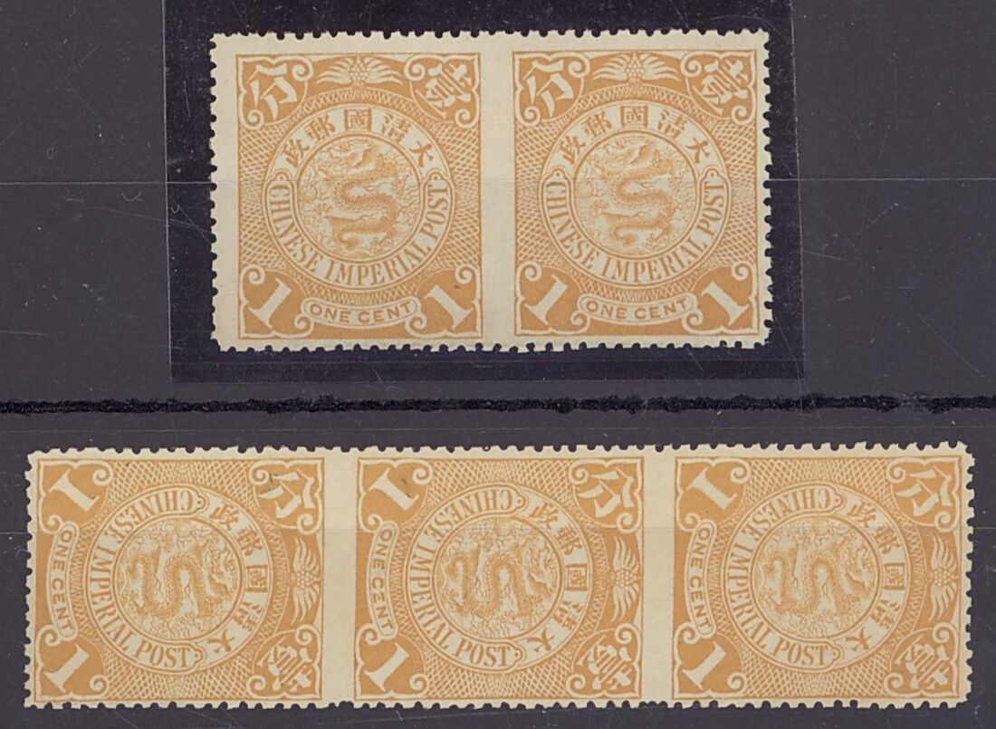 1898 Coiled Dragon 1c. ochre-buff, imperf. between horizontal pair and vertical strip of three imperforate between two stamps, unmounted mint, the strip with slightly patchy gum at places; fine. S.G. 190a, 109b