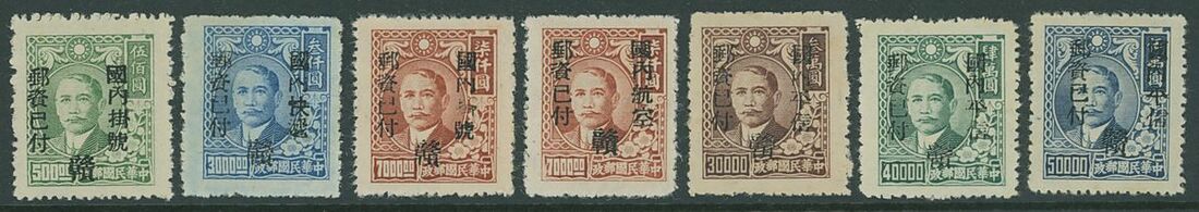 1949 Kiangsi Province $5,000 to $50,000 set of seven, fine unused. S.G. 1225-31, £400