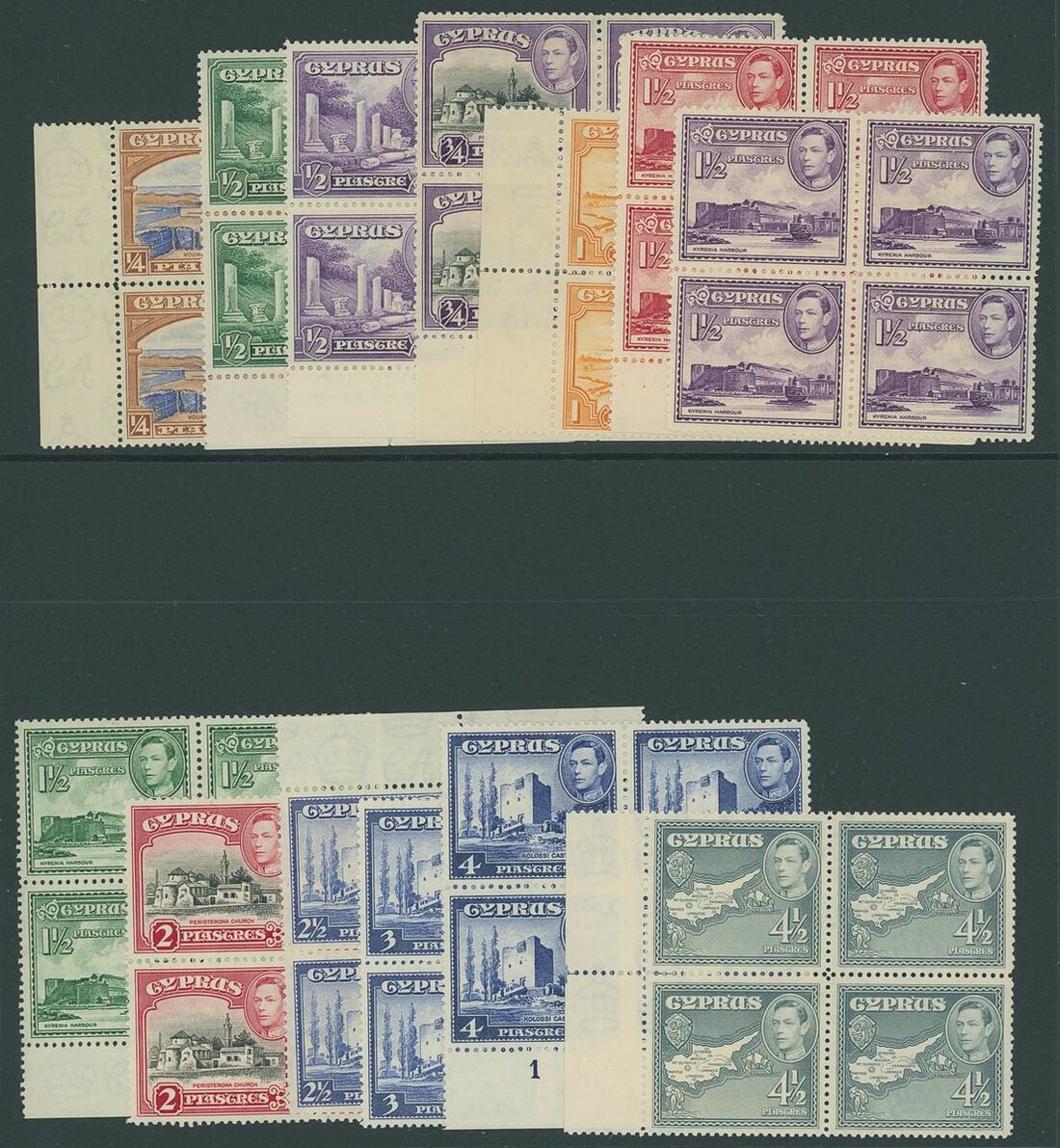 1938-51 ¼pi. to £1 set of nineteen in blocks of four including many marginal, fine and fresh unmounted mint. S.G. 151-163, £1,000+