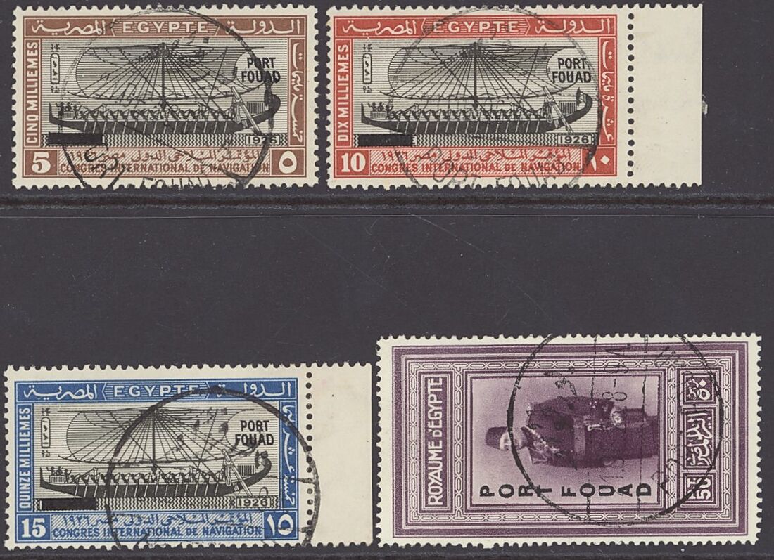 1926 Port Fouad set of four used, 10m. and 15m. right marginal and signed on the reverse, 5m. and 50m. with expert mark on the reverse. fine. S.G. 141-144, £2,250