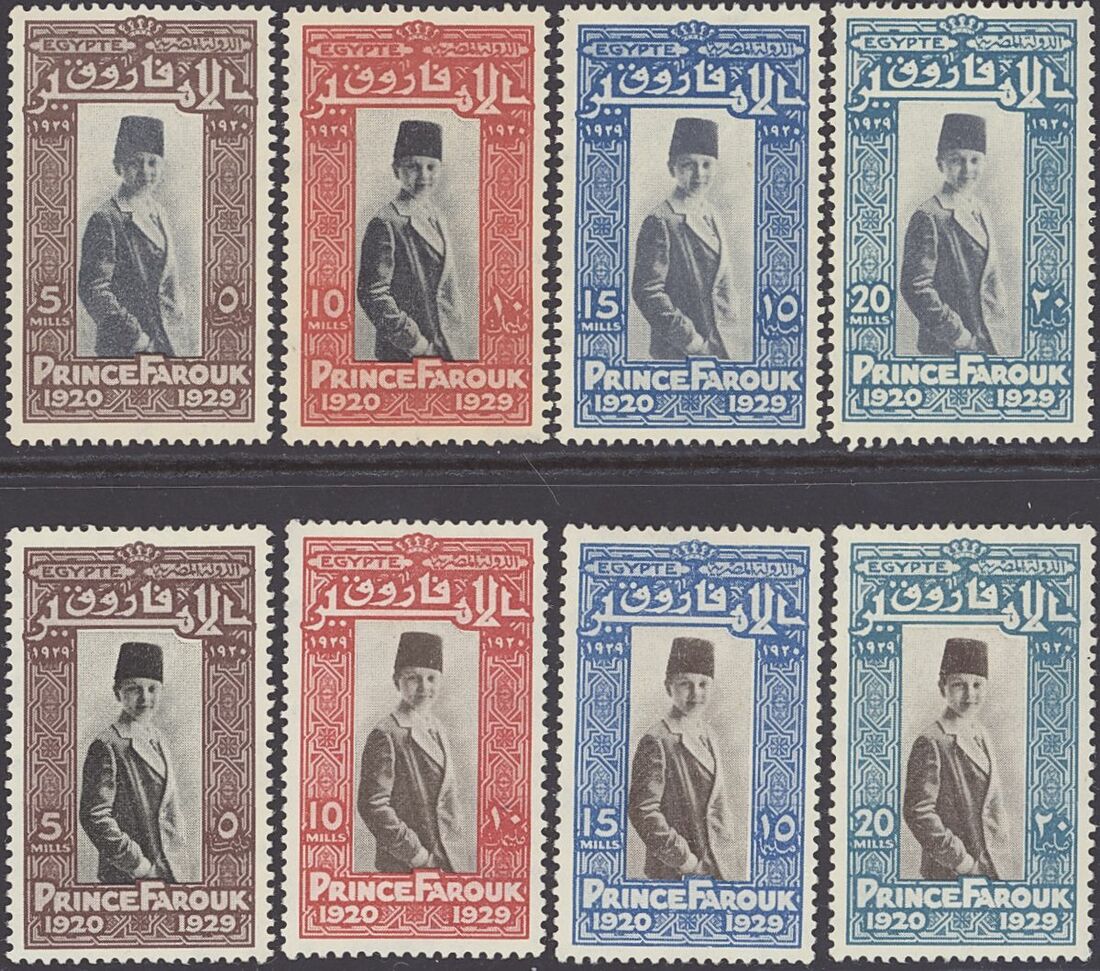 1929 Prince's Birthday 5m. to 20m. with trial centre in black (5m.) or brown (10m. to 20m), very lightly mounted, fine and fresh. In addition, a normal mint set for comparison. S.G. 178a-181a, £600