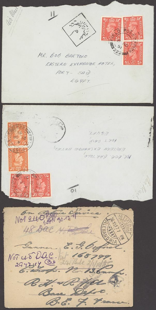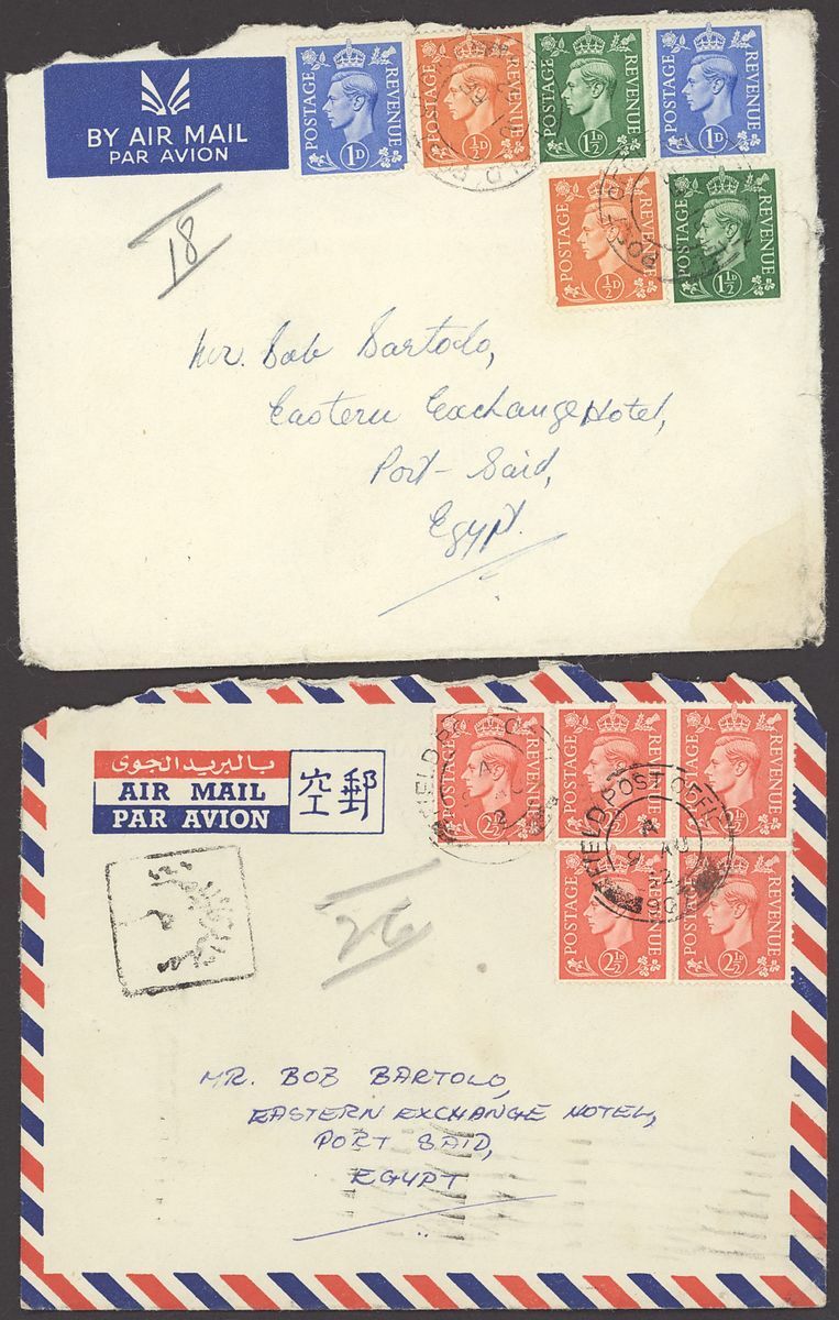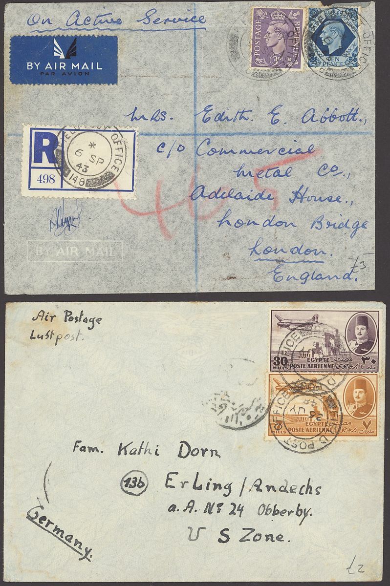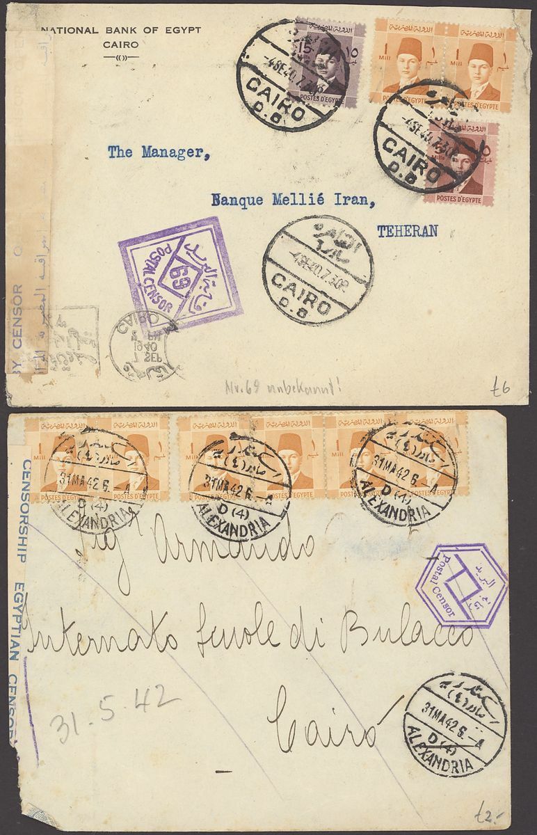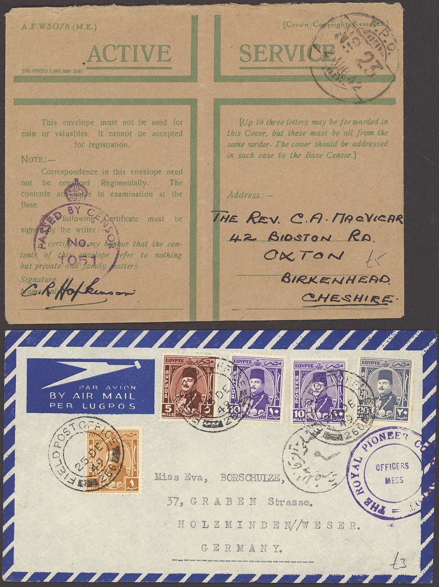 1855-1950s postal history selection (80+) including 1855 stampless entire from Alexandria to Leghorn, 1856 small size envelope from Suez, range of Paquebots including 1937 pre-printed
