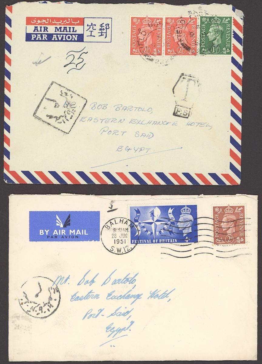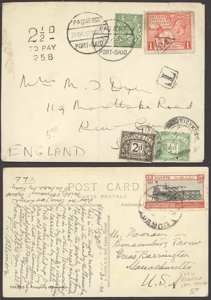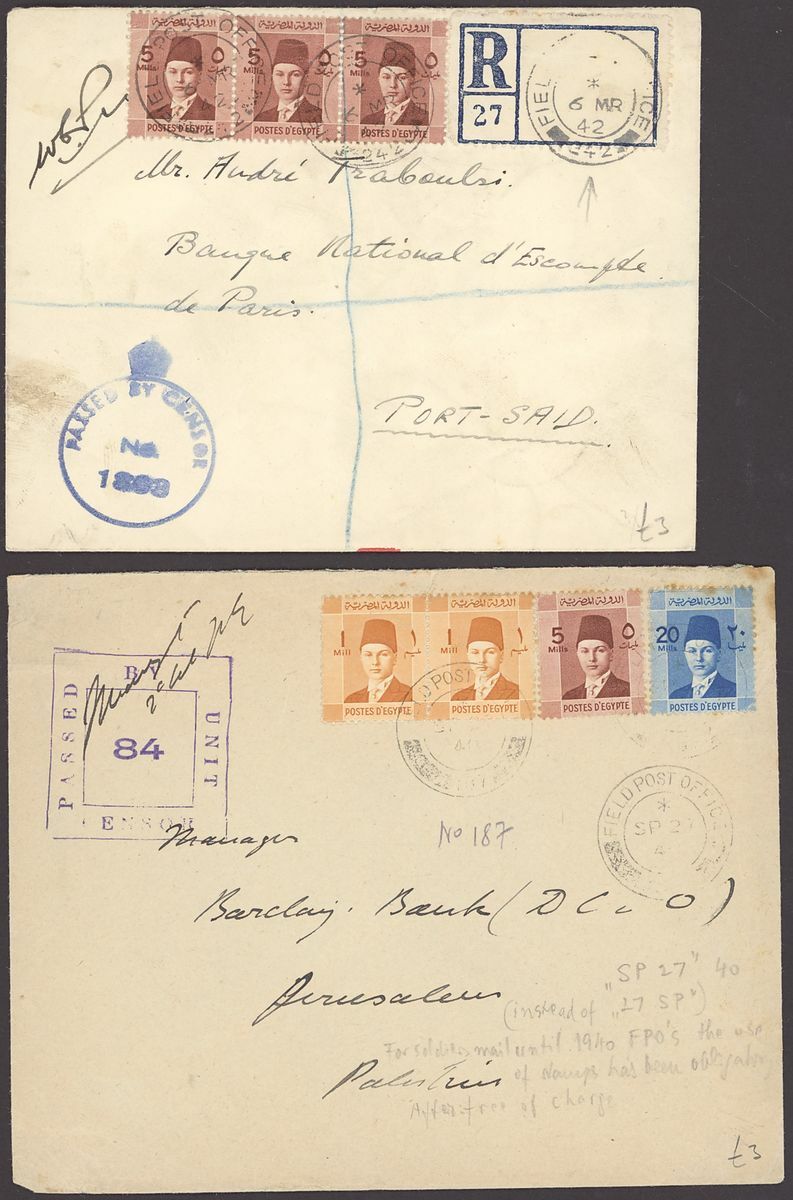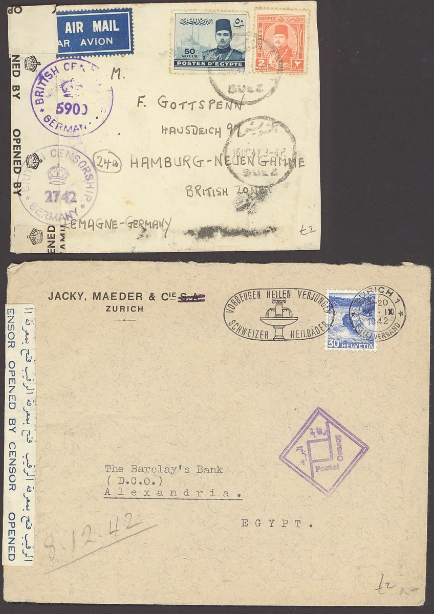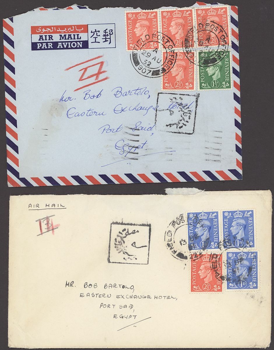 1855-1950s postal history selection (80+) including 1855 stampless entire from Alexandria to Leghorn, 1856 small size envelope from Suez, range of Paquebots including 1937 pre-printed