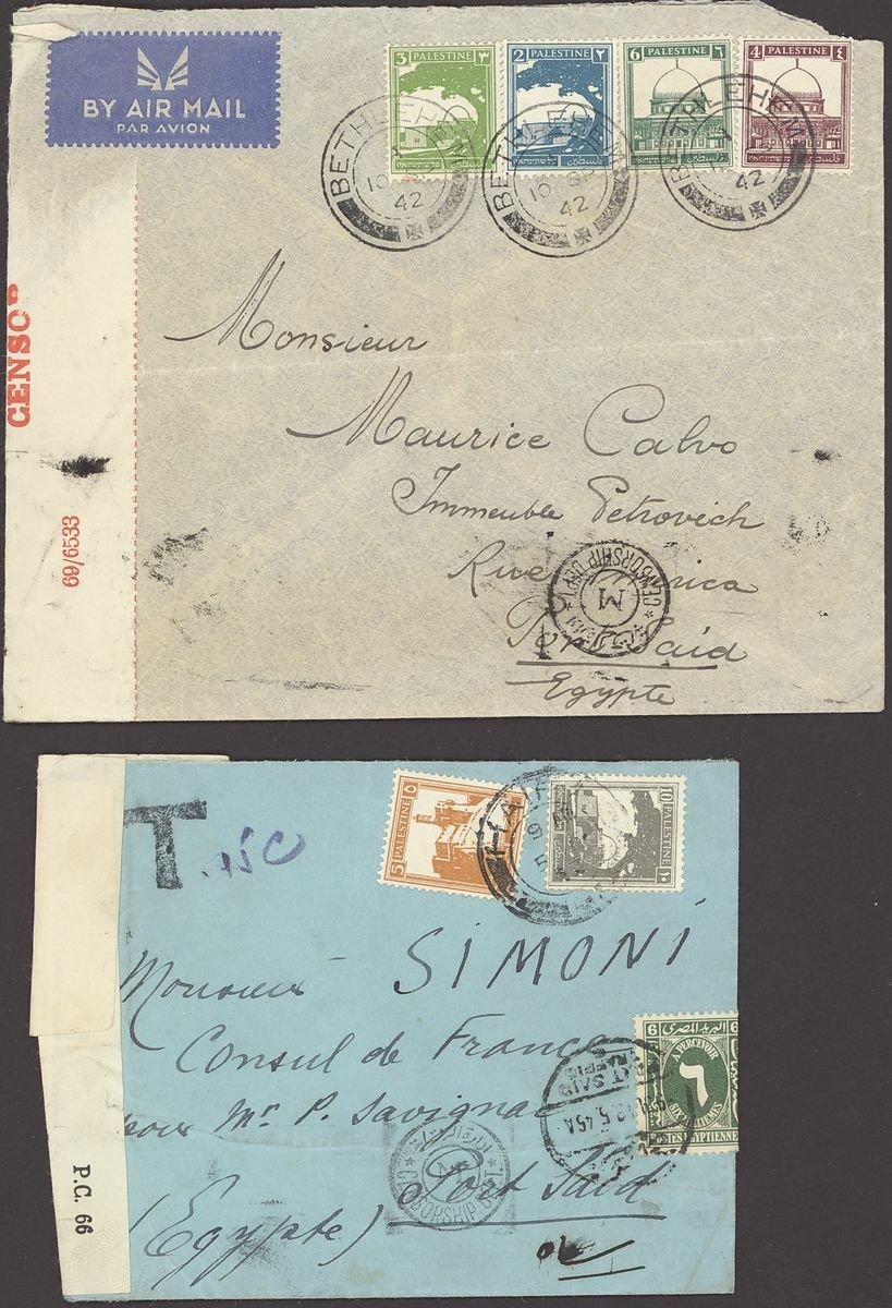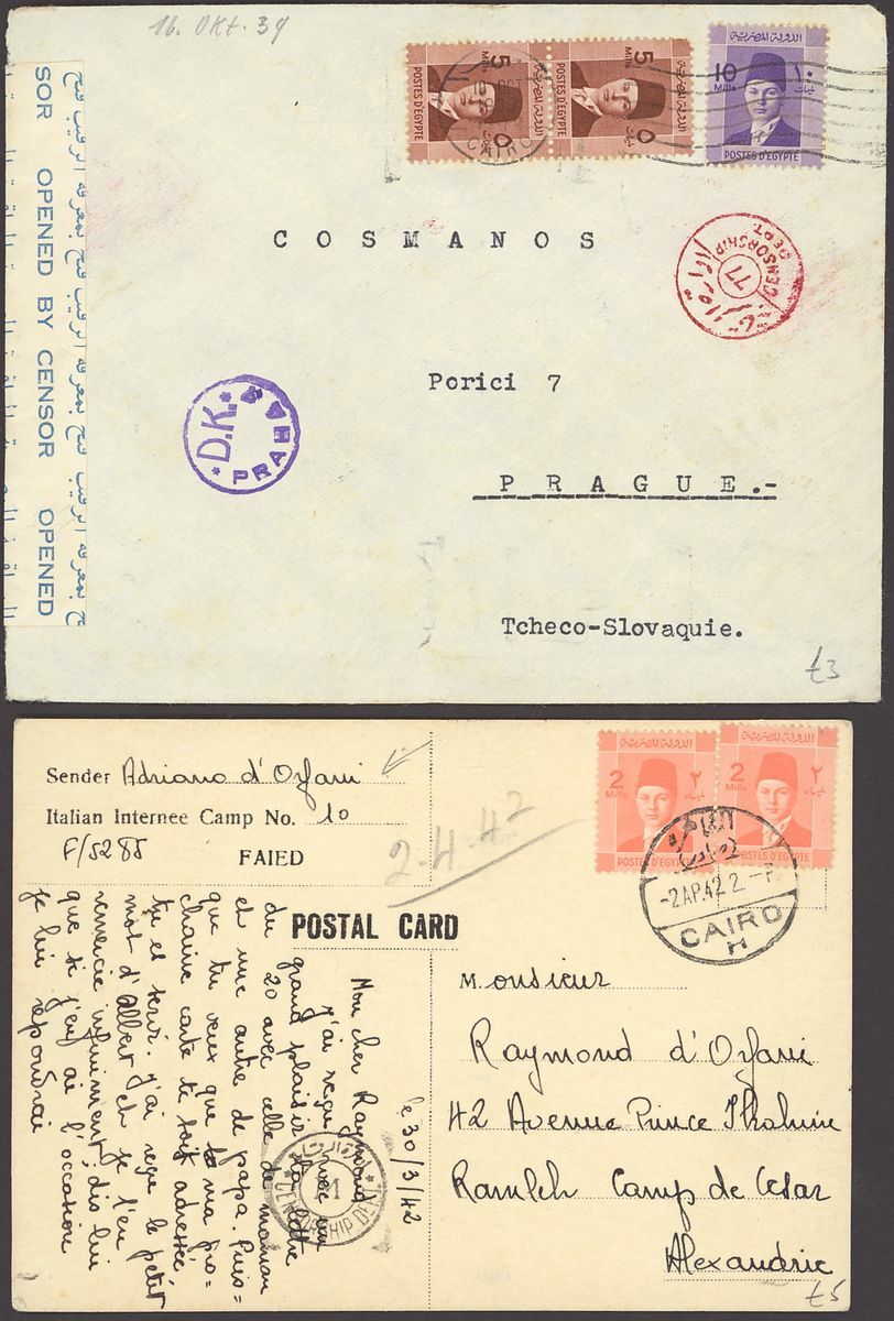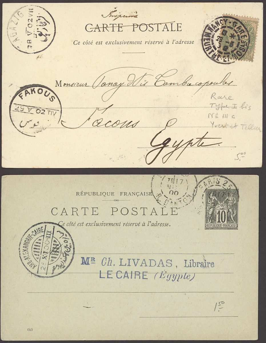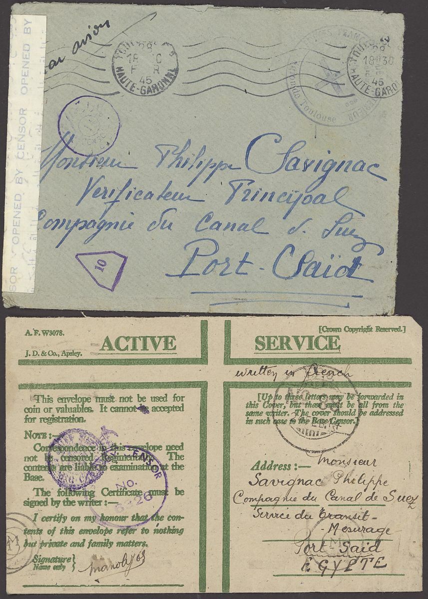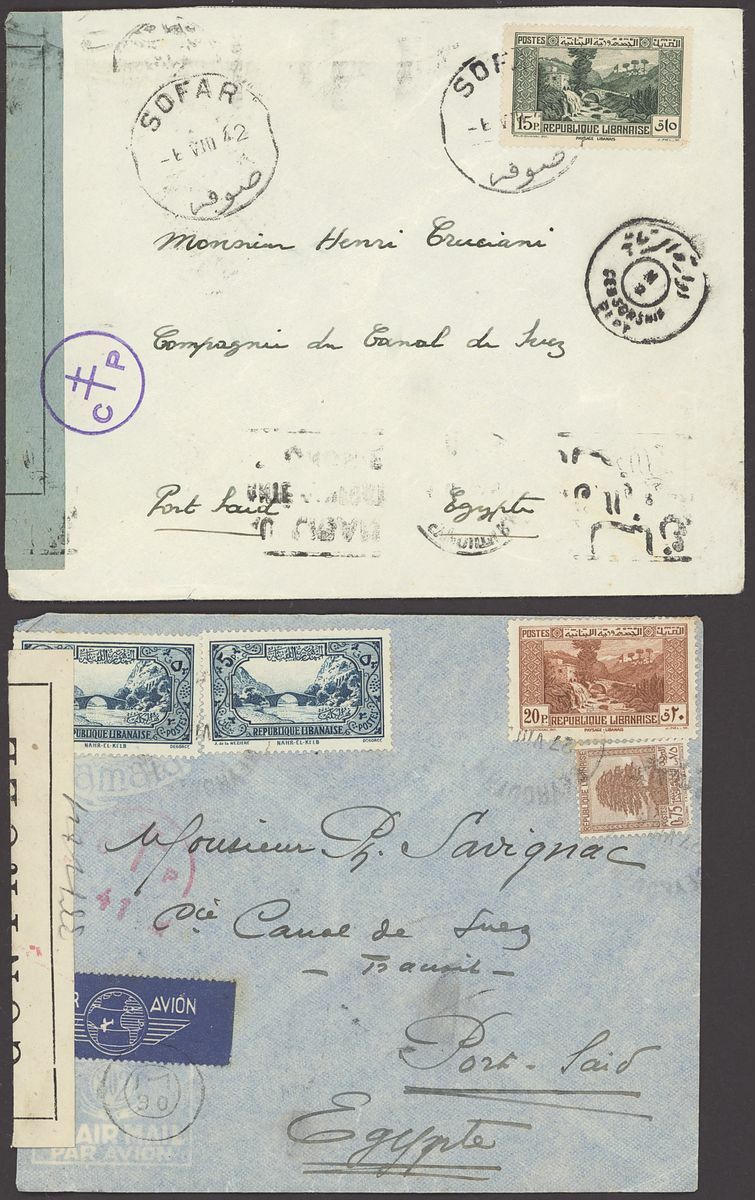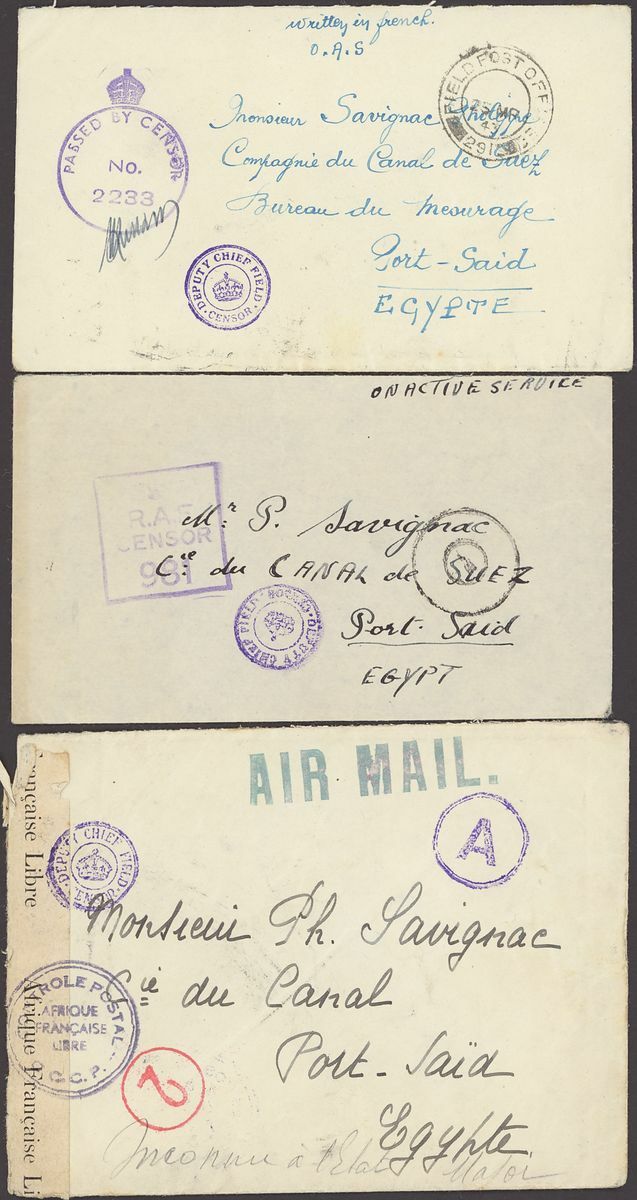 1855-1950s postal history selection (80+) including 1855 stampless entire from Alexandria to Leghorn, 1856 small size envelope from Suez, range of Paquebots including 1937 pre-printed