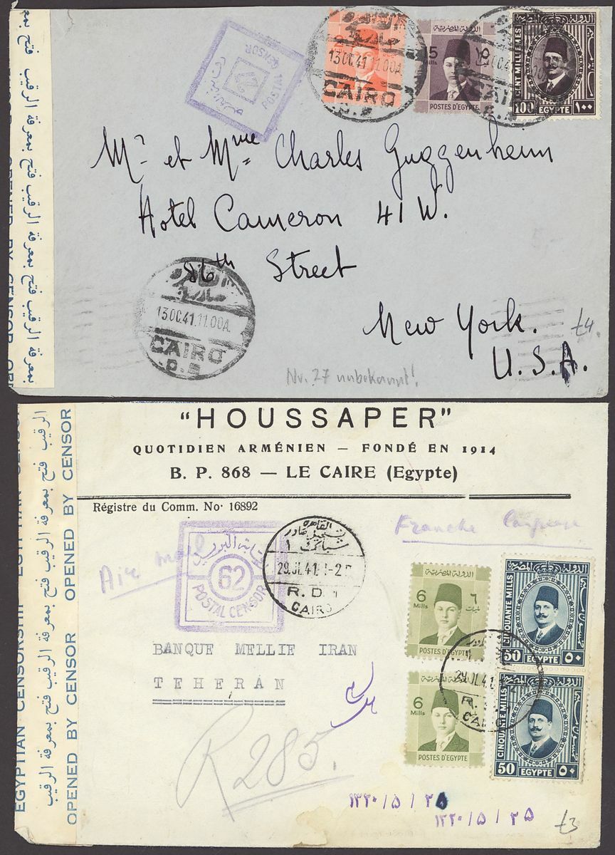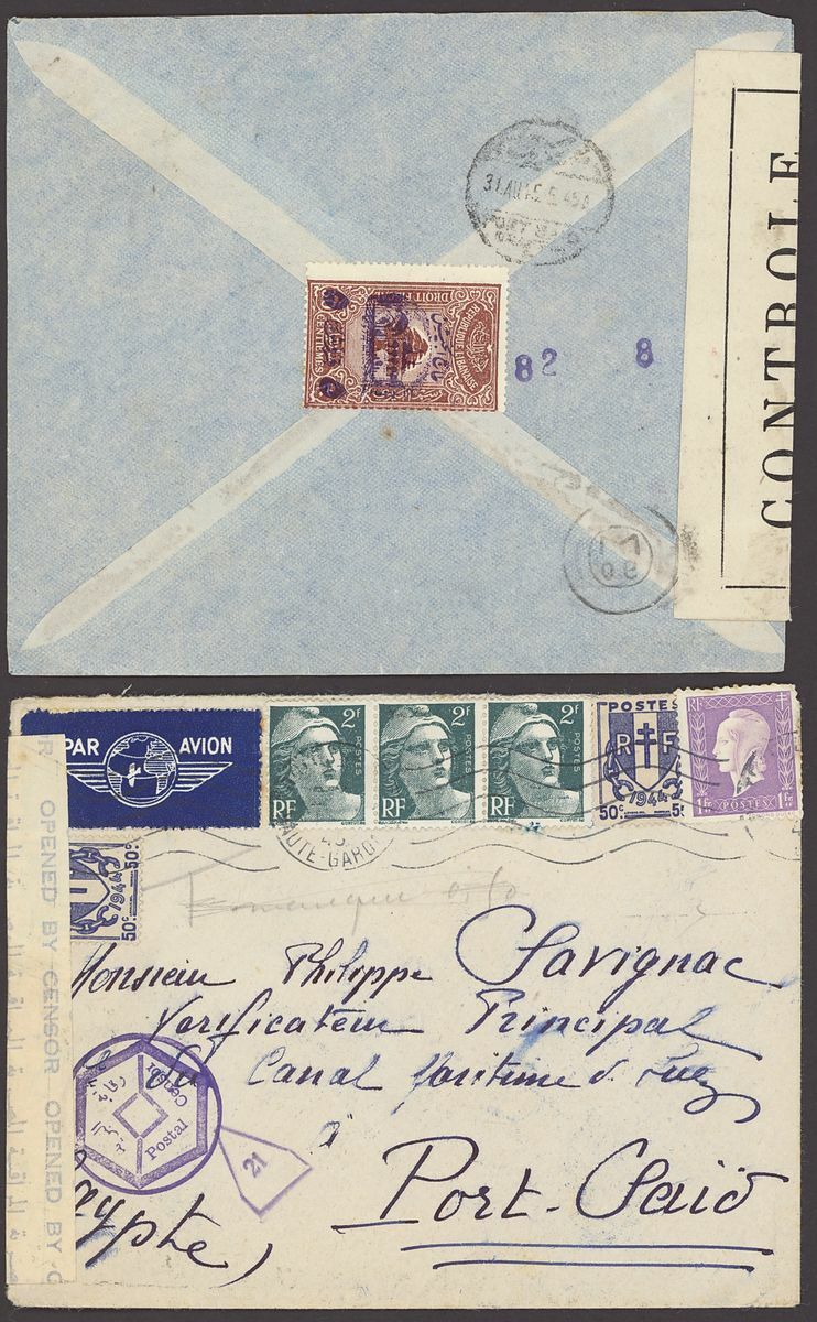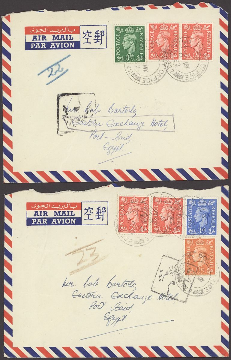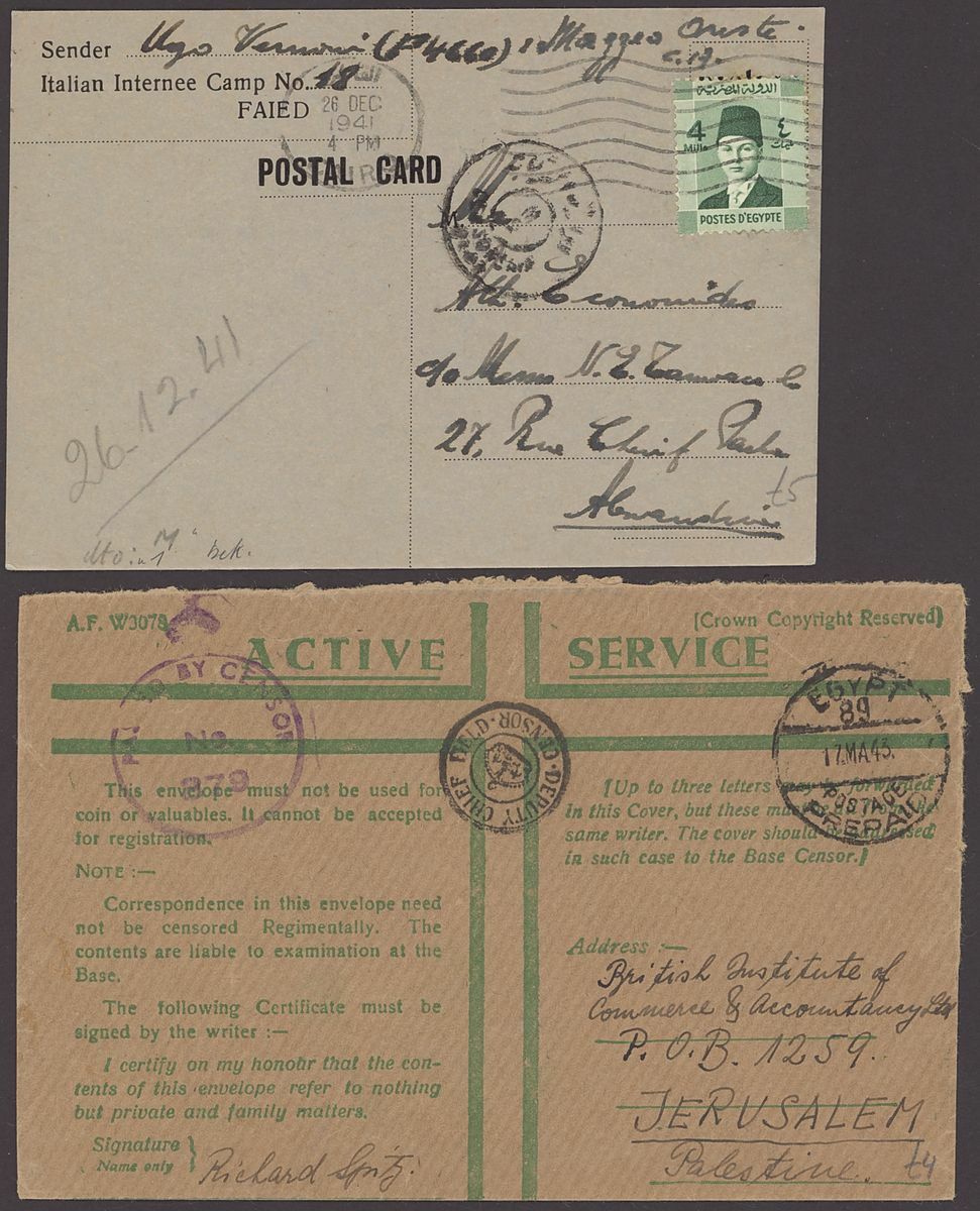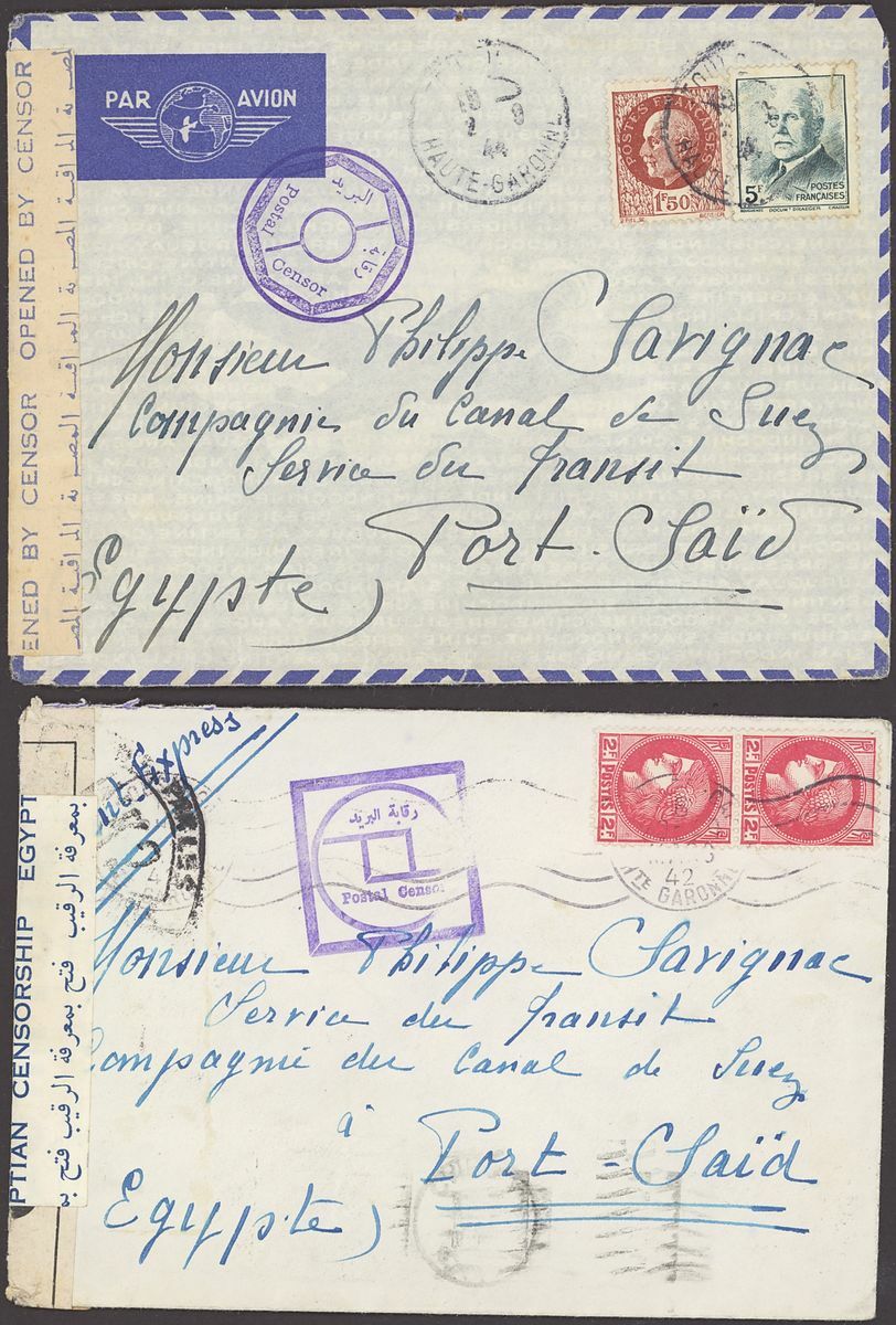 1855-1950s postal history selection (80+) including 1855 stampless entire from Alexandria to Leghorn, 1856 small size envelope from Suez, range of Paquebots including 1937 pre-printed