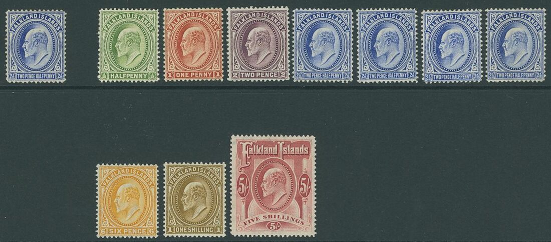 1904-12 MCA set of eight plus shades to 5/- including 2½d. (5, one deep blue with RPS cert.), generally fine mint. S.G. 43-50 group, £800+