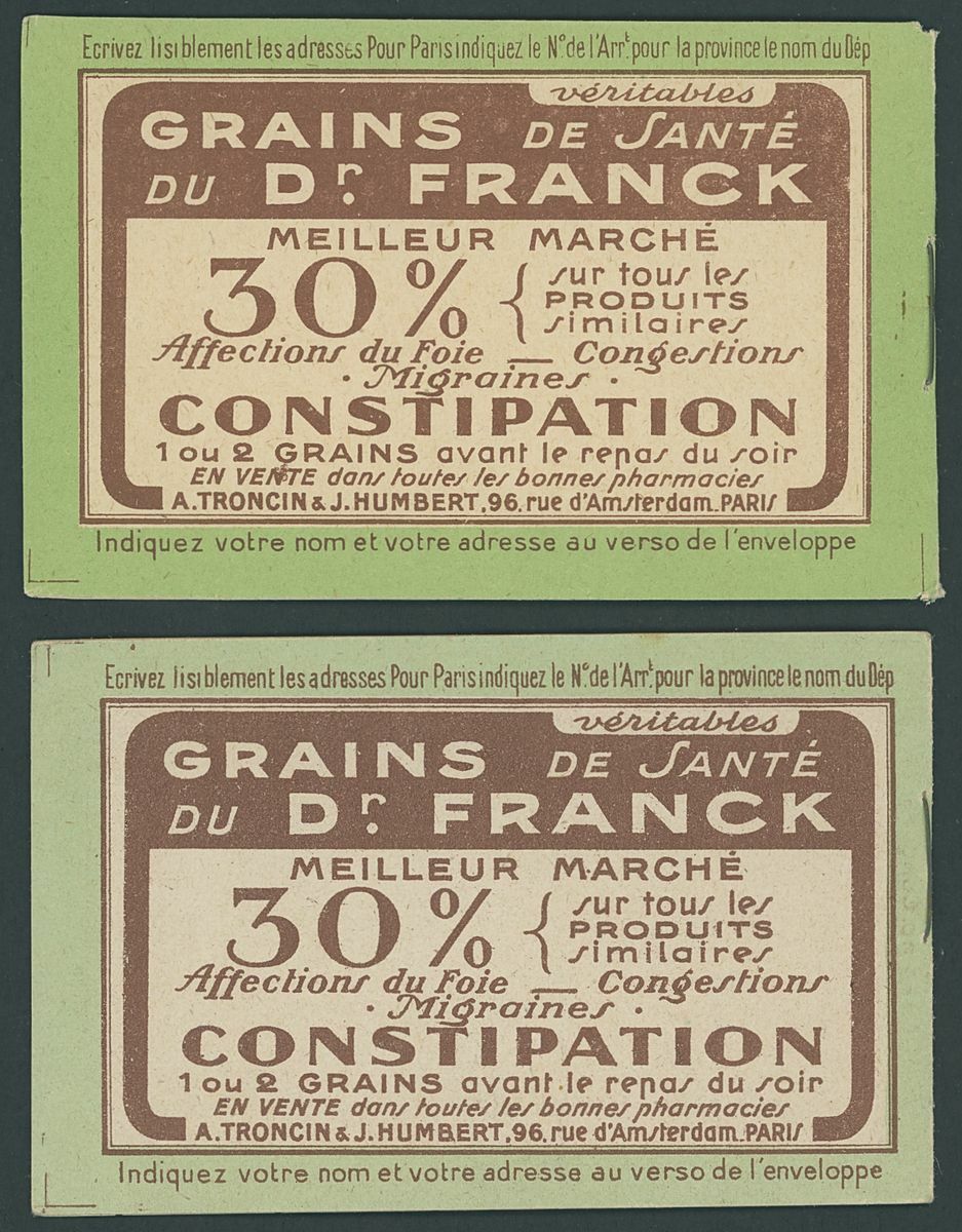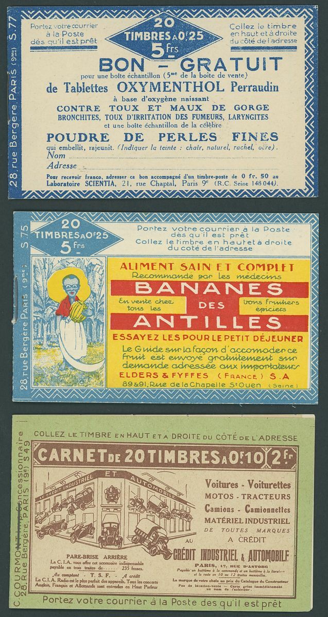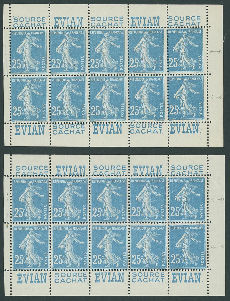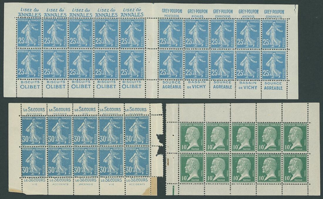 Selection (8), comprising 1923 2f. (two S.28), 5f. with Pubs (S.75 and 77), 1923 Pasteur 2f. (two S.44 and two S.49), etc., also a selection of panes, Spink Maury 25, 36, 38, 138