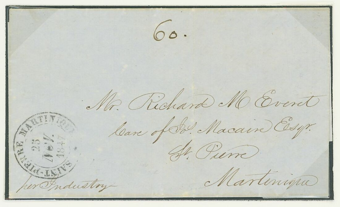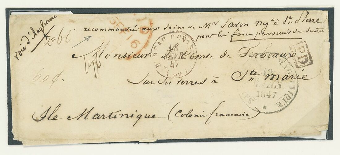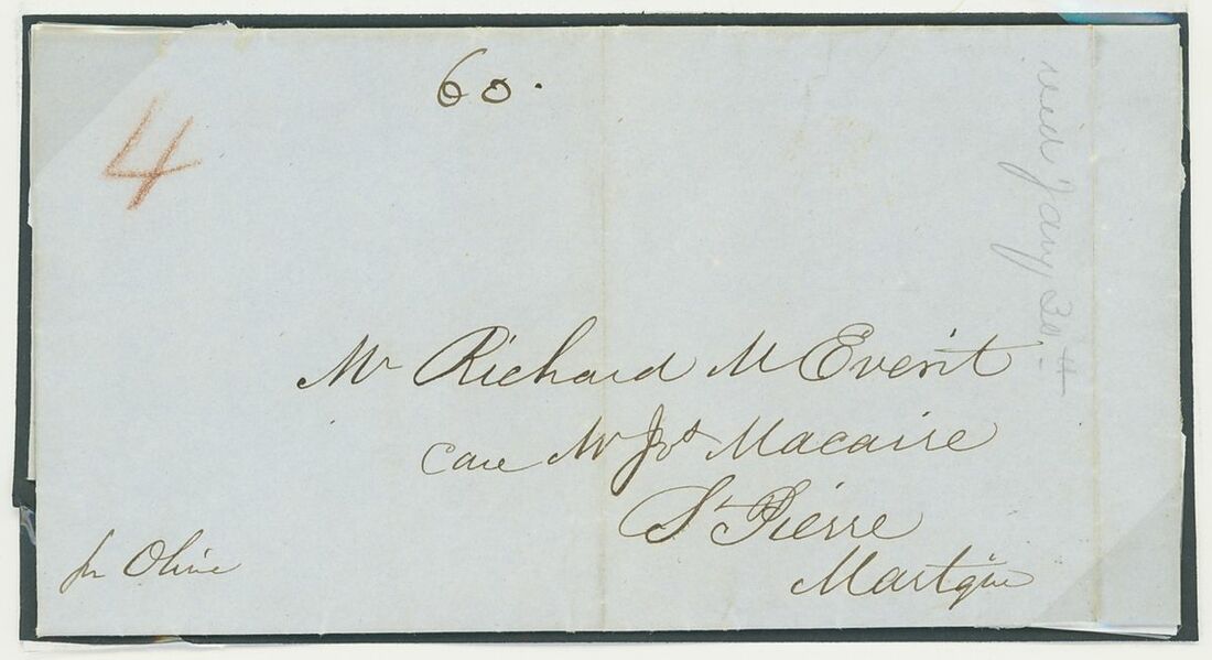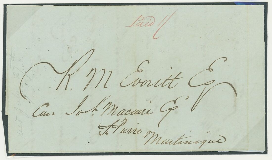 1847 and 1848, four stampless incoming entires from Paris, Newhaven Ct., Barbados and St. Thomas, a variety of manuscript markings; good to fine