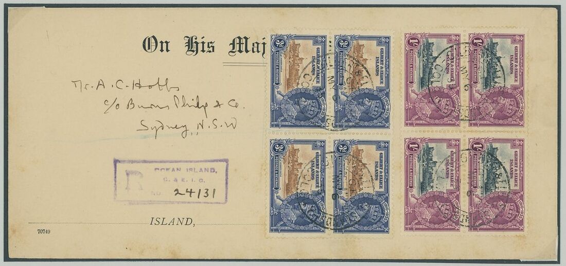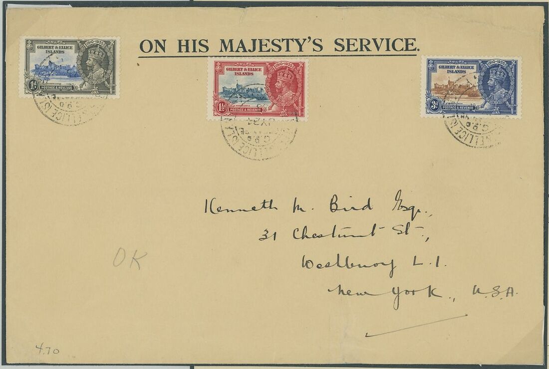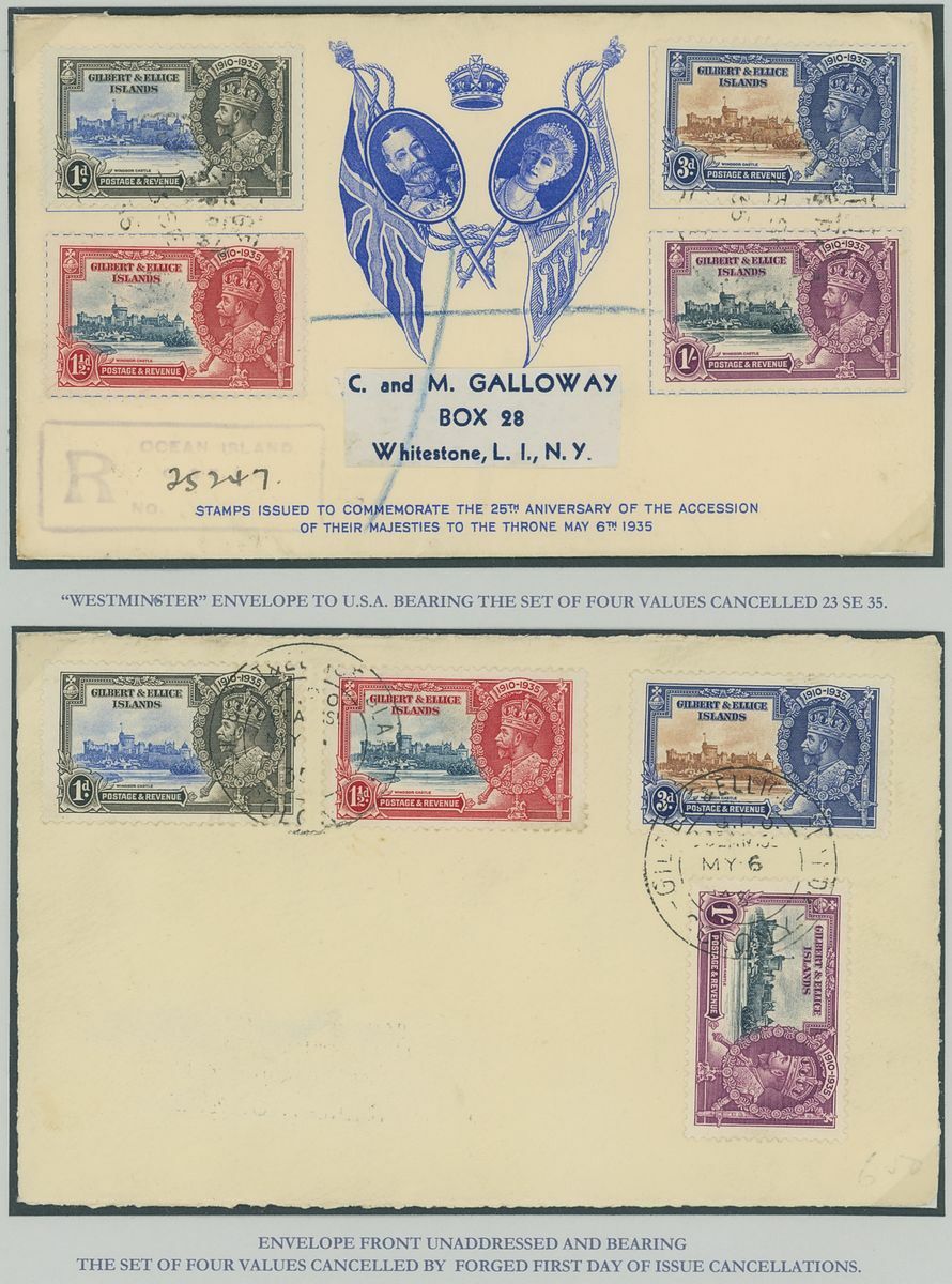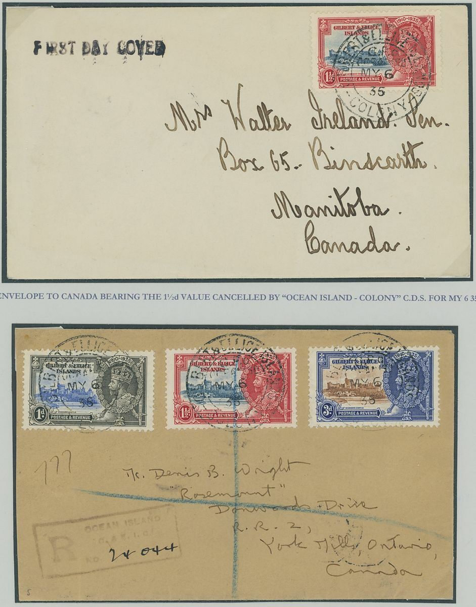 1935 Silver Jubilee a postal history selection (12, nine registered) addressed to Australia, England, Scotland, U.S.A., Canada and Samoa comprising an illustrated envelope with full set, set in blocks of four on two envelopes registered to Sydney cancelled on First Day, an attractive selection from these remote islands.