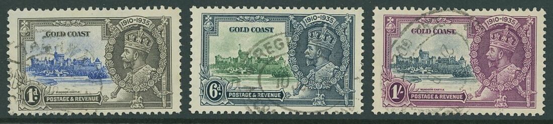 1935 Silver Jubilee variety used trio including 6d. extra flagstaff, 1d. and 1/- short extra flagstaff, generally fine. S.G. 113b, 115a, 116b, £1,350