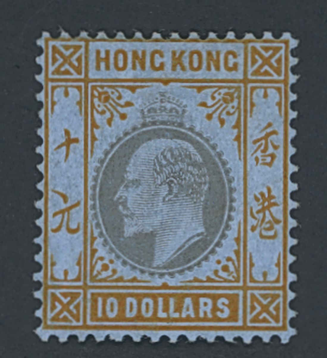 1904-06 $10 slate and orange on blue chalk-surfaced paper, part original gum; fresh colour, fine. S.G. 90b, £2,000