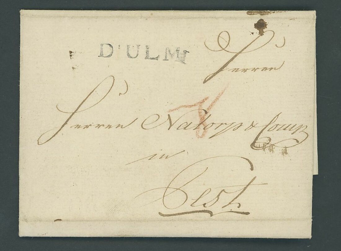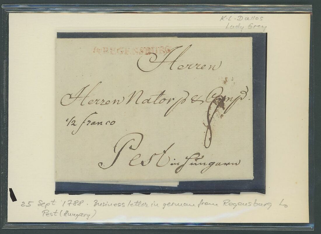 1788-1844 pre stamp postal history selection (4) including incoming letters 1788 (2) from Regensburg with different handstamps, 1794 from Ulm, and outgoing 1844 to Wien. An unusual selection.