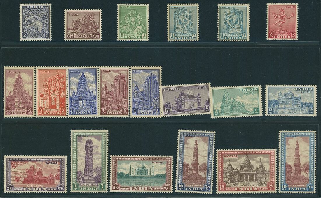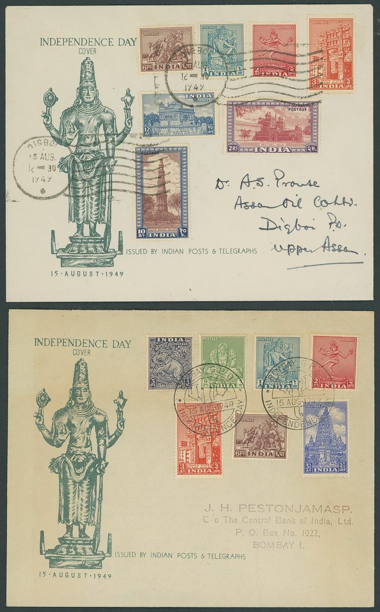 1949-52 3p. to 15r. and 1950-51 1a. to 4a., fine unmounted mint; also, 3p. to 3a. and 6p., 1a., 2a., 3a., 12a., 2r. and 10r. on first day covers. Fine