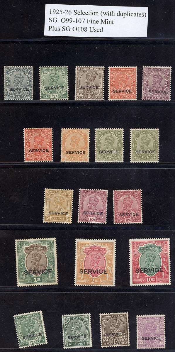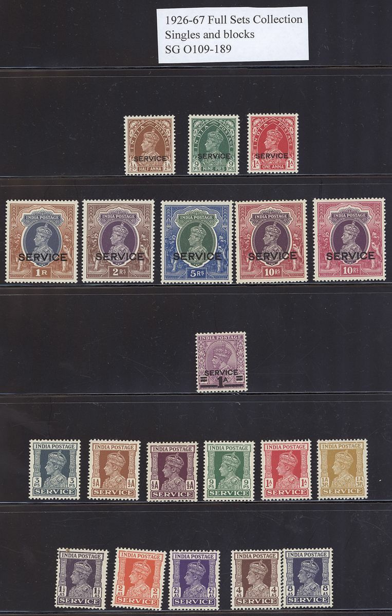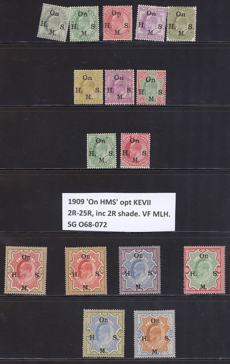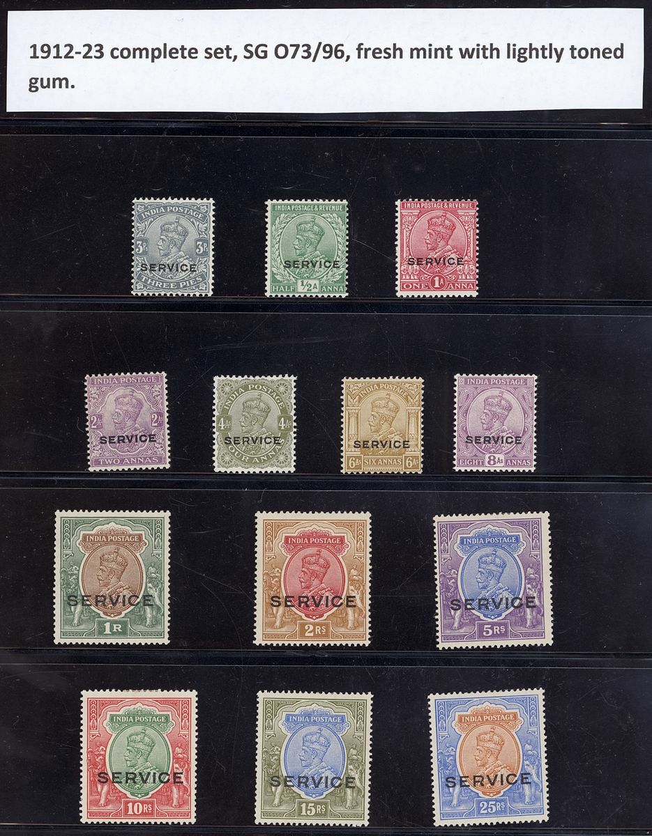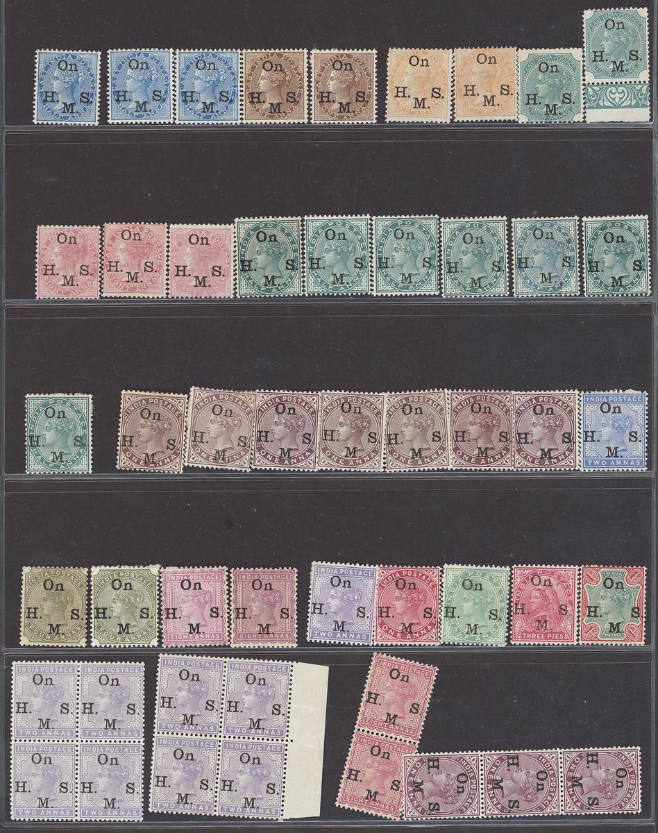 A mint and used collection on pages including 1866-72, 1867-73 mint values, 1874-82 mint values including 2a. (2), 1883-99 values to 1r. with multiples, 1909 2r. to 25r. set of four (2), 1912-23 set to 25r., 1925 1r. on 15r. (2), 1r. on 25r. and 2r. on 25r. (2), 1926-31 set to 10r., KGVI sets and later officials in blocks. Mixed condition though a valuable group. Cat. c.£2,500+