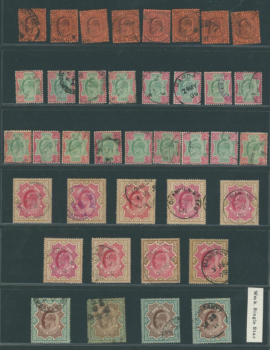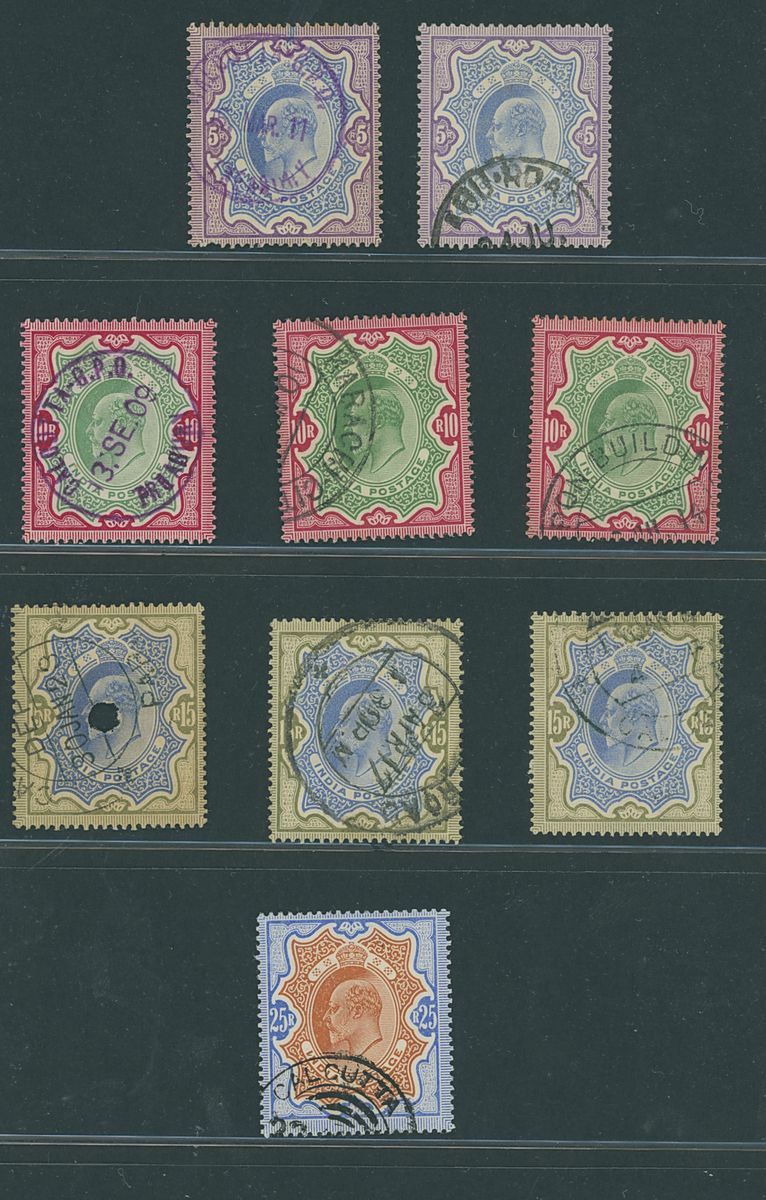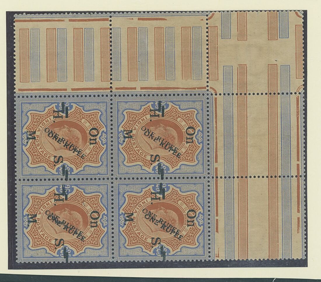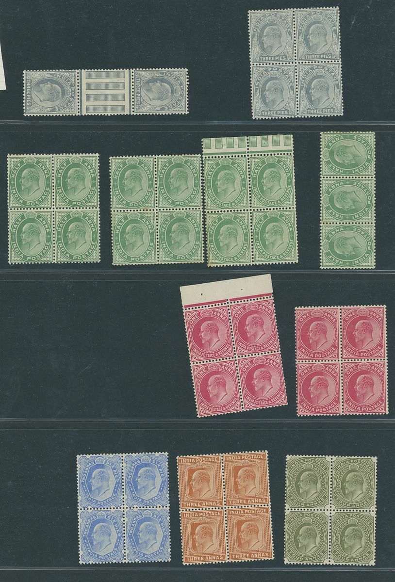 1902-25, a mint and used collection on stock pages including 1902-11 set of seventeen from 3p. to 25r. (toned) with odd duplicates up to 15r., strips and blocks all unused; used with duplicates to 15r., 1905 ¼a. on ½a. block of eight and blocks of four (4) and single with inverted surcharge, unused and Official 1925 1r. on 10r., 15r. and 25r. interpanneau blocks of four with double surcharge (these unused and believed to be of spurious origin). Generally fine though some toning. S.G. c.£6,000+