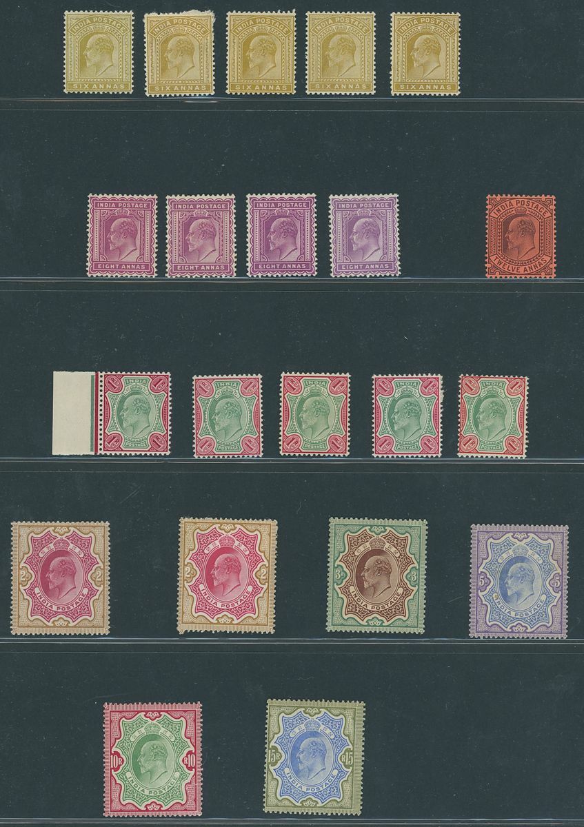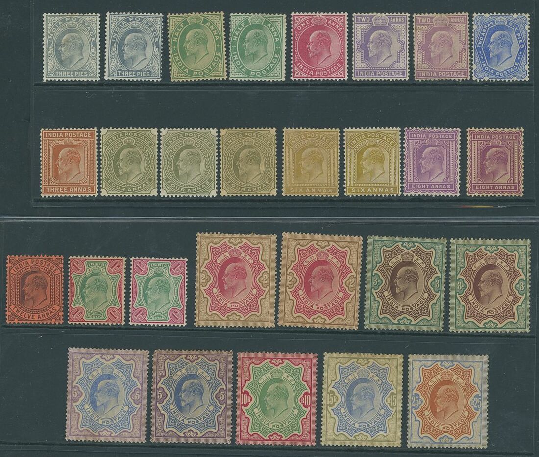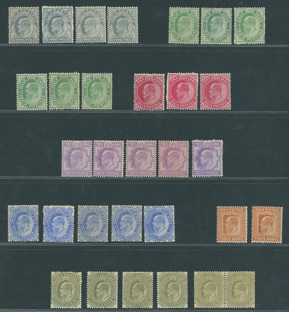 1902-25, a mint and used collection on stock pages including 1902-11 set of seventeen from 3p. to 25r. (toned) with odd duplicates up to 15r., strips and blocks all unused; used with duplicates to 15r., 1905 ¼a. on ½a. block of eight and blocks of four (4) and single with inverted surcharge, unused and Official 1925 1r. on 10r., 15r. and 25r. interpanneau blocks of four with double surcharge (these unused and believed to be of spurious origin). Generally fine though some toning. S.G. c.£6,000+
