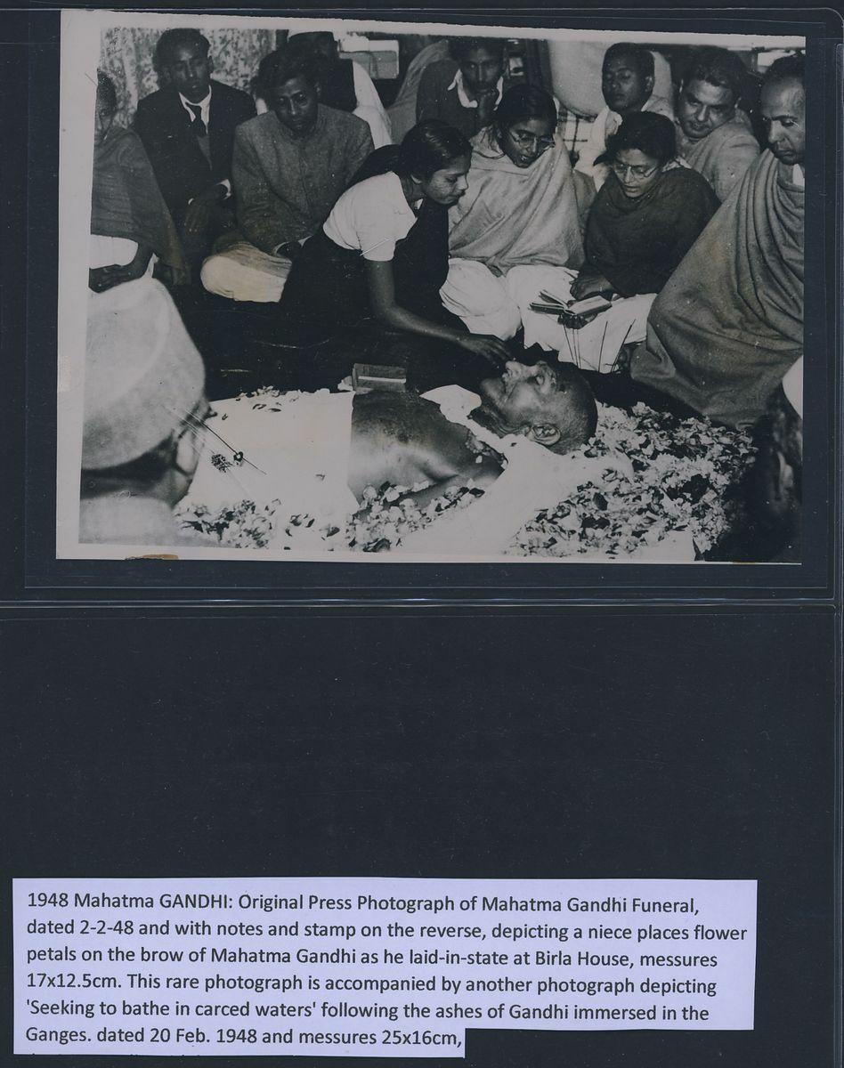 1948-2009 a small group of Gandhi material on pages including 1948 (14 Feb.) London Illustrated News leaf titled "