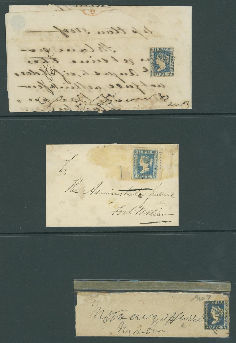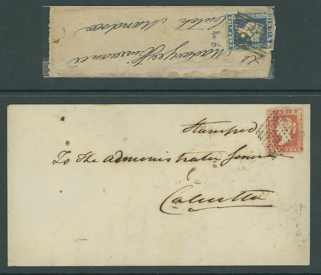 1854-75 postal history selection (31) including 1854-55 ½a. (4) and 1a., 1863 letter registered to England bearing 8a. (4), 1867 entire to England bearing 8a. and 6a.8p., mixed condition, an exciting lot for the collector of the area.