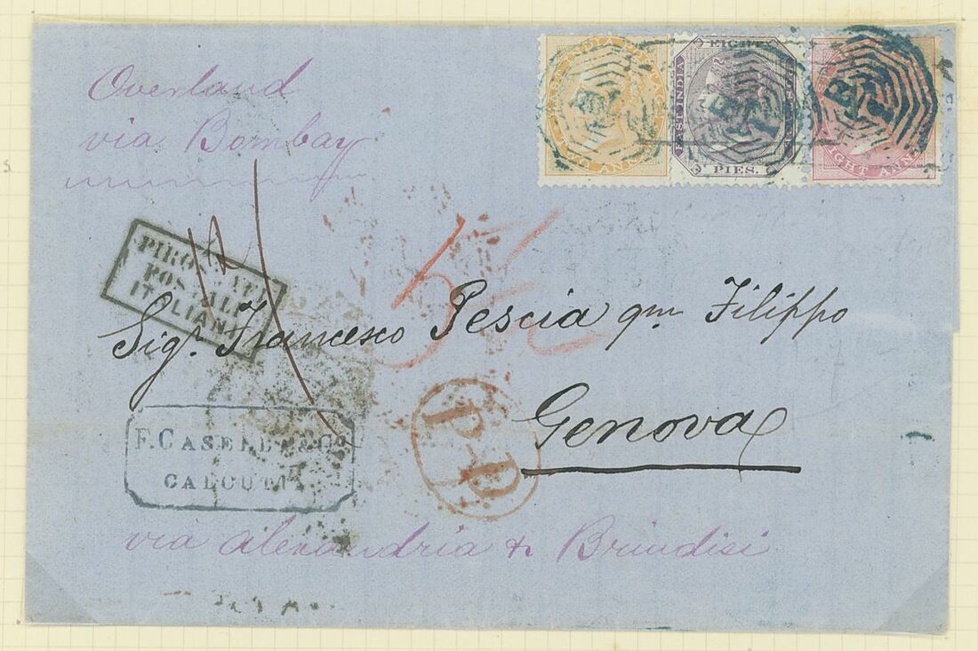 1856-71 postal history selection (5), three to Italy and two to the U.S.A. on written pages showing town number cancels, mixed condition. An interesting lot for the specialist.