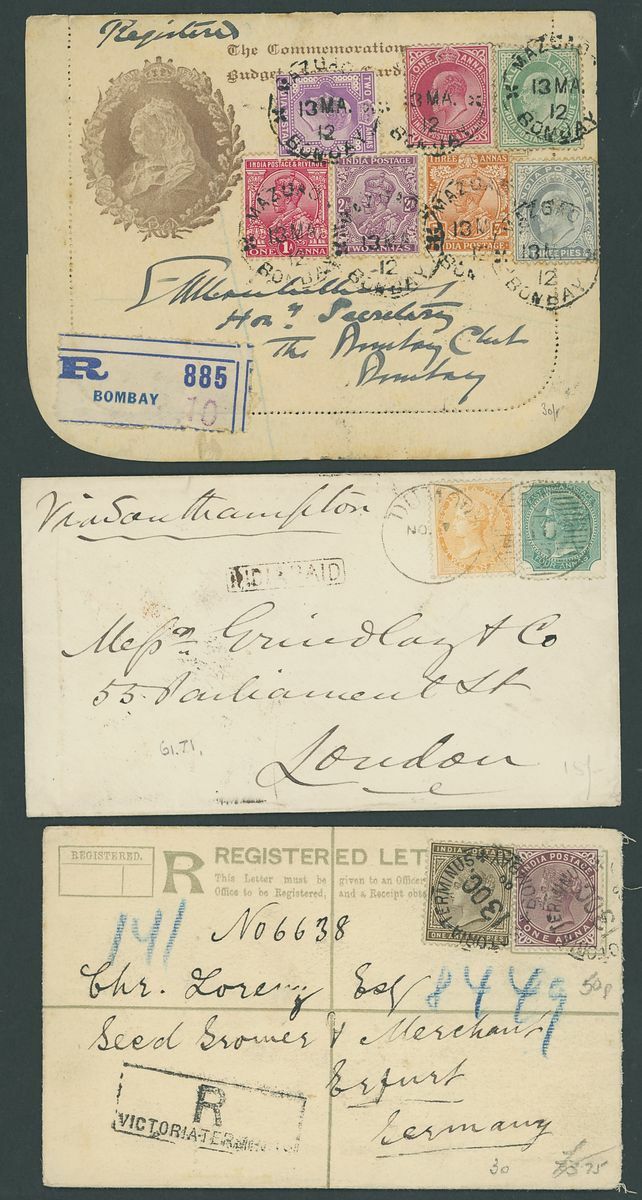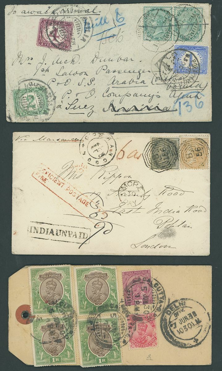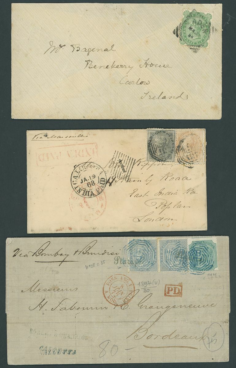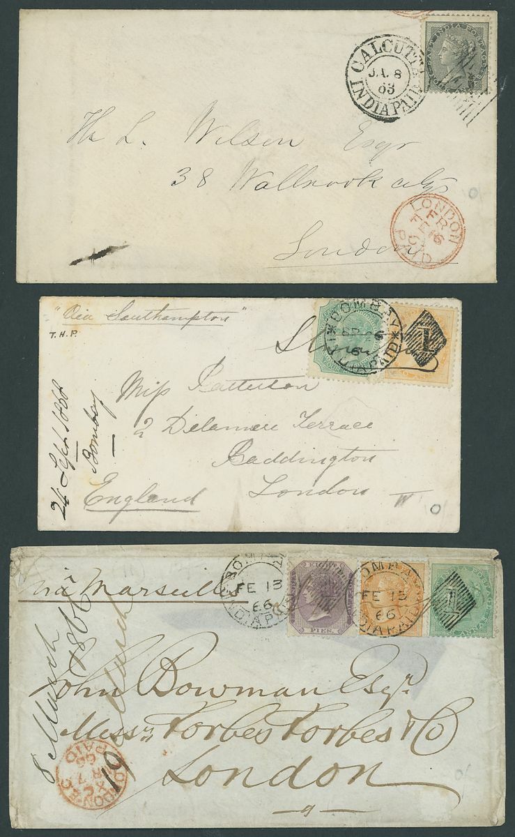 1850s-1940s postal history selection (80+) including 1863 envelope to England bearing ½a. (4) and 2a. (2) cancelled by B/156 obliterator, 1903