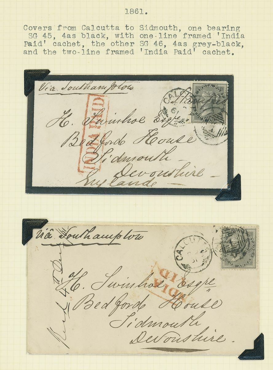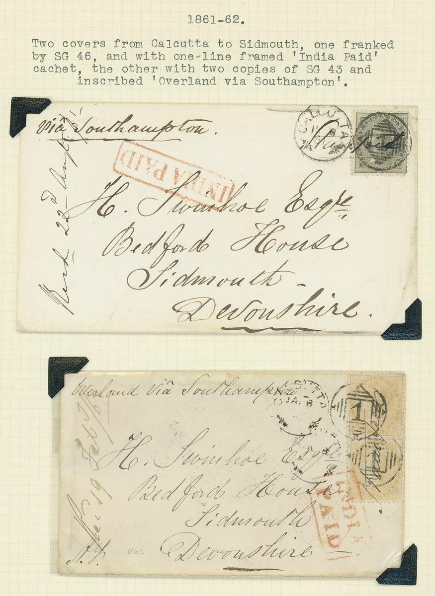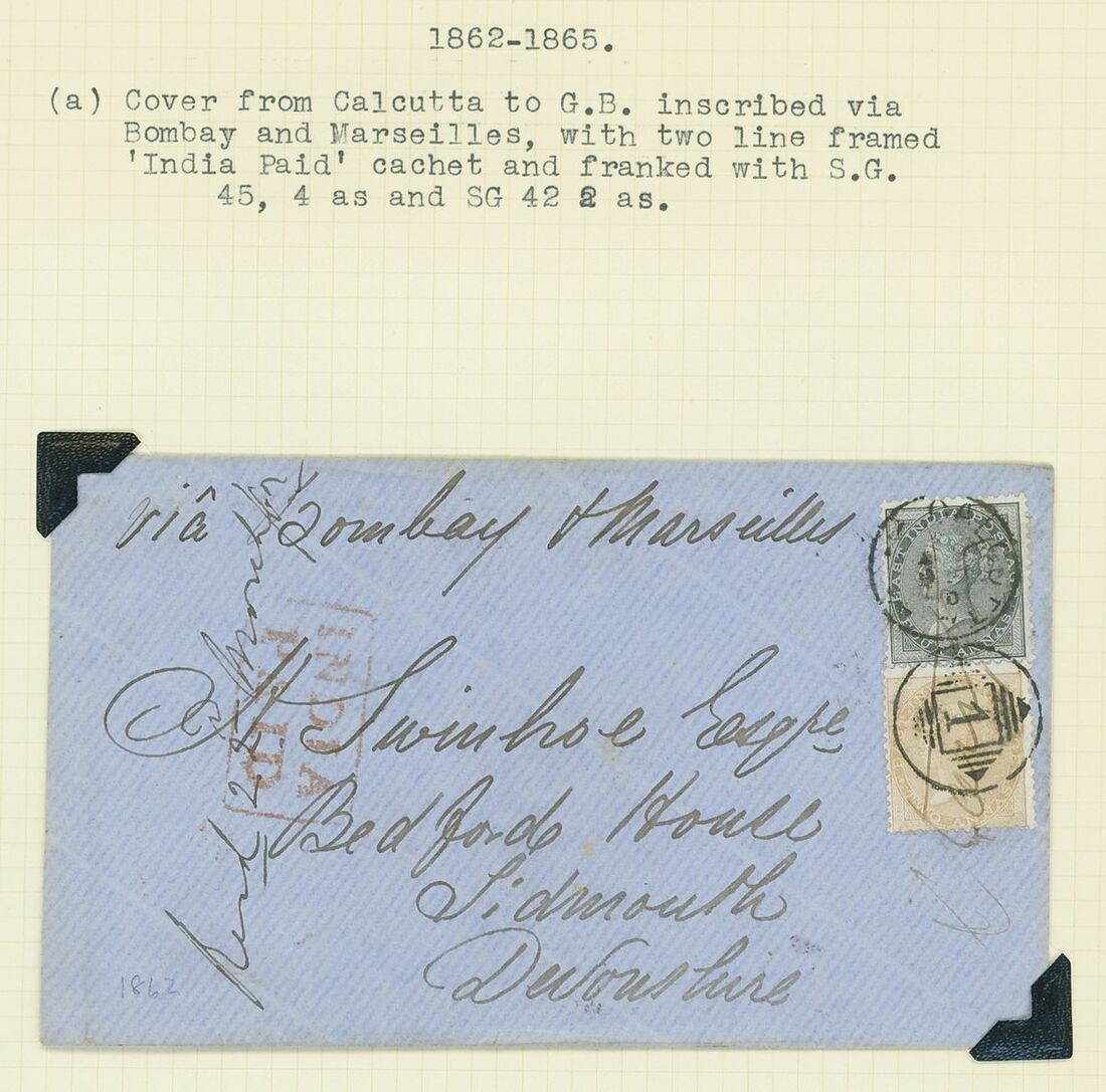1861-1905 postal history selection (32) arranged on written up album pages including 1863 mourning cover to England bearing 8p., 2a. and 4a., 1865 soldier cover to England bearing 8p., 1869 envelope to England bearing 2a. and 6a.8p., mixed condition, a great lot for the student of the area.