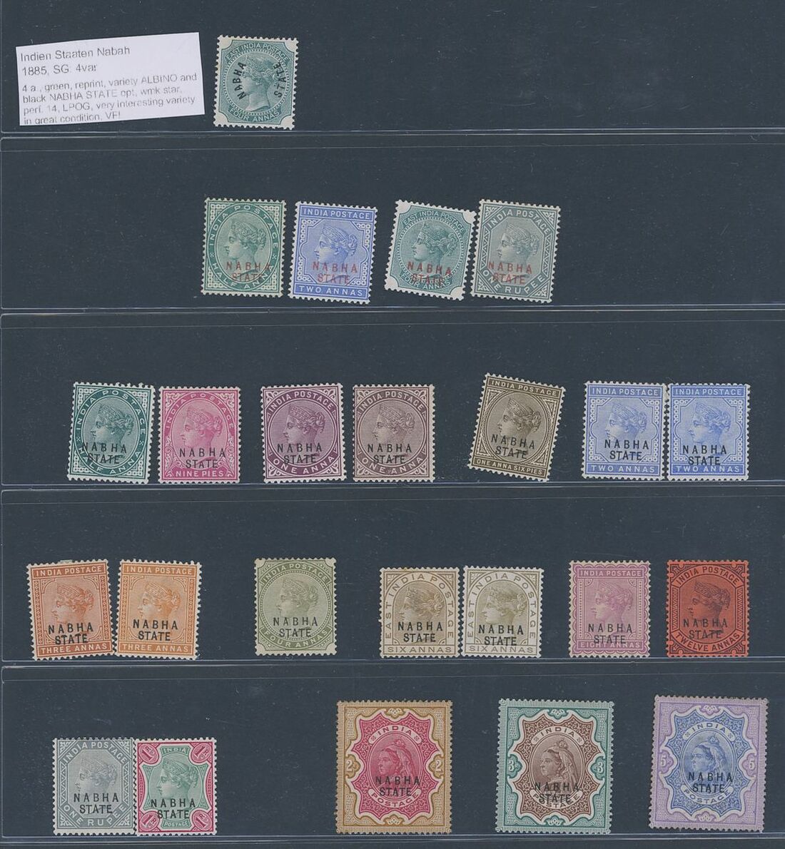 1885-1900, a predominantly mint collection including 1885-1900 sets overprinted in red and black, 1938 set with additional 25r., KGVI values in blocks of four; Officials with 1885-97 set to 1r. green and carmine; also postmarks and stationery cards. Mixed condition though a good group. Cat. c.£2,200+