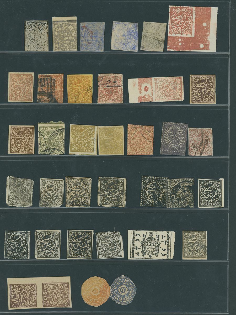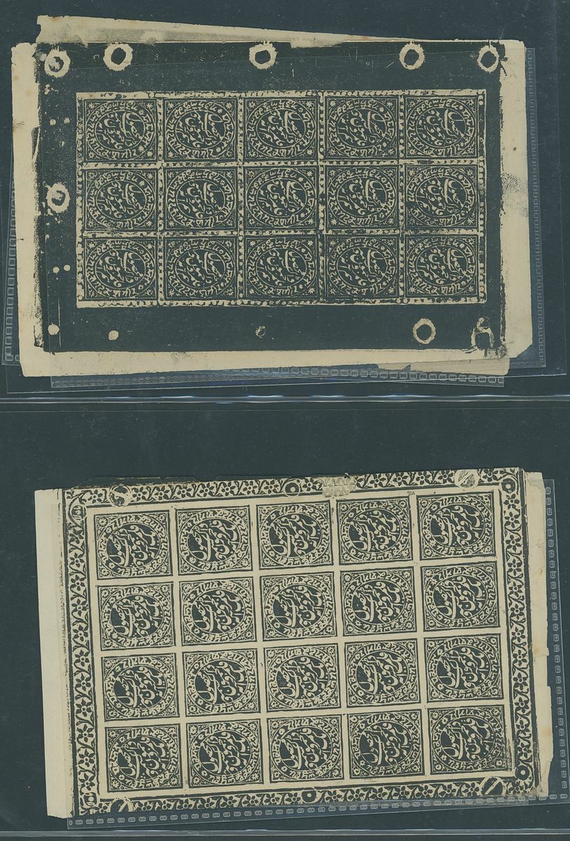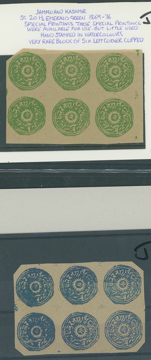 A mint and used collection on pages including circular 1½ emerald green block of six, 1a. bright blue block of six, 1877-78 with ½a. sage green, 4a. sage green 1883-94 with sheetlets of fifteen of various values, duplication and various types; also a range of used examples of various issues; good to fine