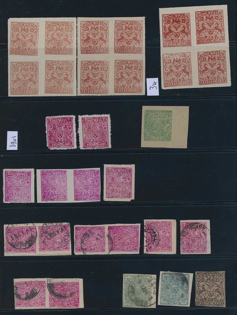 1899-1910 mainly mint group on pages and Hagners including 1899 unused values to 2r. brown-red and with imperf blocks of four of the 1r. value, 1901 with 1r. green, 1904-10 set, 1904 ¼a. blue rouletted sheets of twenty (4, showing the different settings), 2a. purple rouletted sheet of twenty, 1913-16 5r. brown complete sheet of twenty (2), etc.