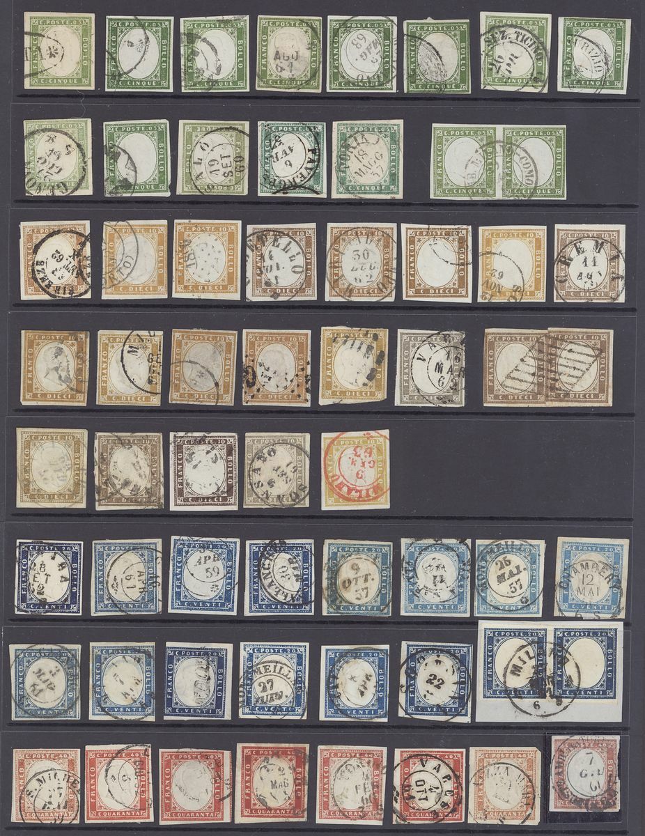 Mint and used selection (90+) on stockpage, including 1851 5c., 1855-63 5c. (16), 10c. (22), 20c. (19), 40c. (10), 80c. (12) with a good range of shades, etc., mixed condition with many very fine