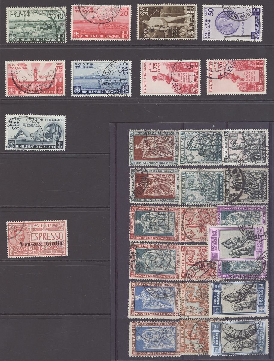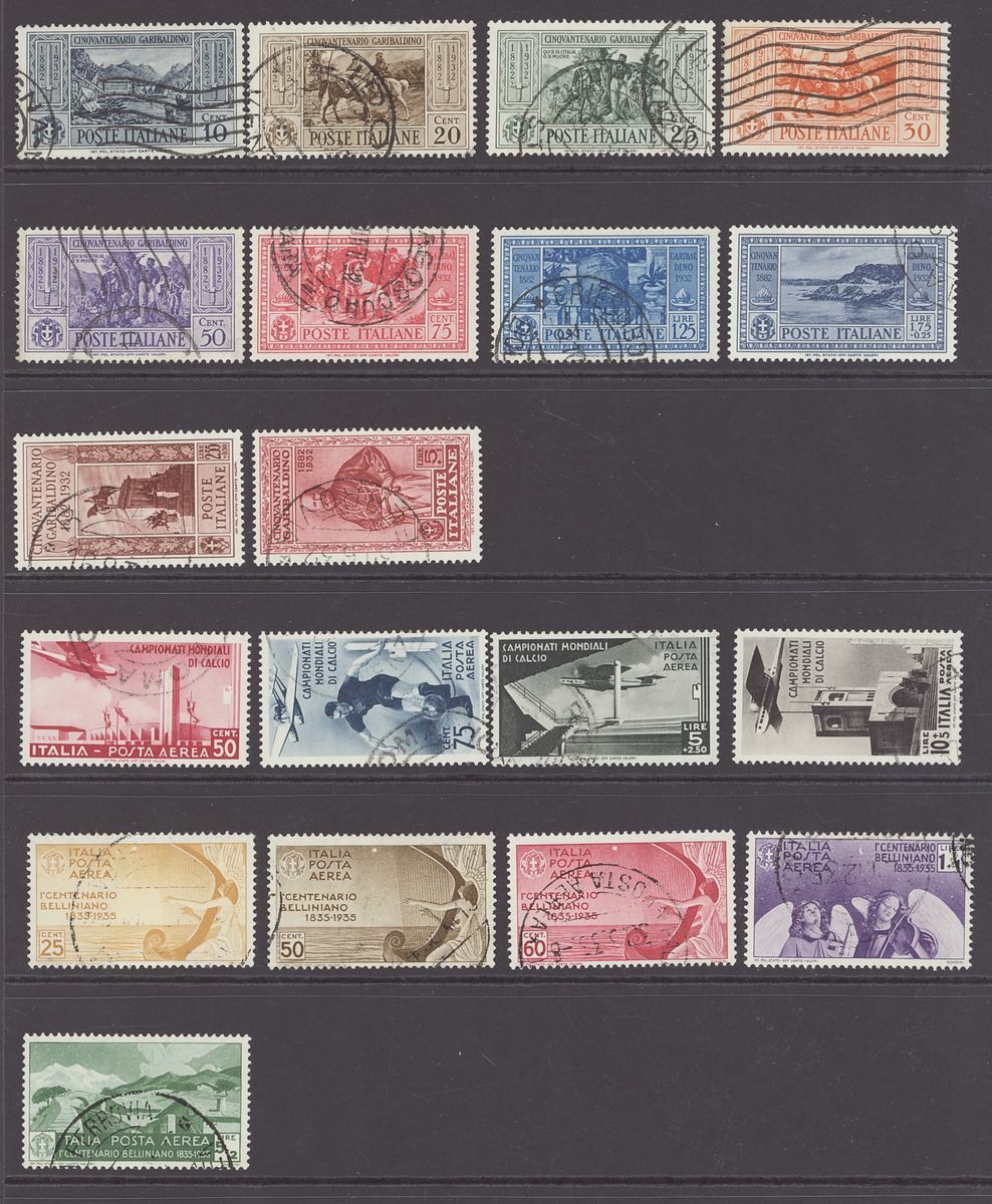 1928-36, used selection (36), including 1928 Filberto set with additional values to 10L., 1932 Garibaldi Postage set, 1934 Football Air set, 1935 Bellini Air set, 1936 Horace Postage set, chiefly fine.