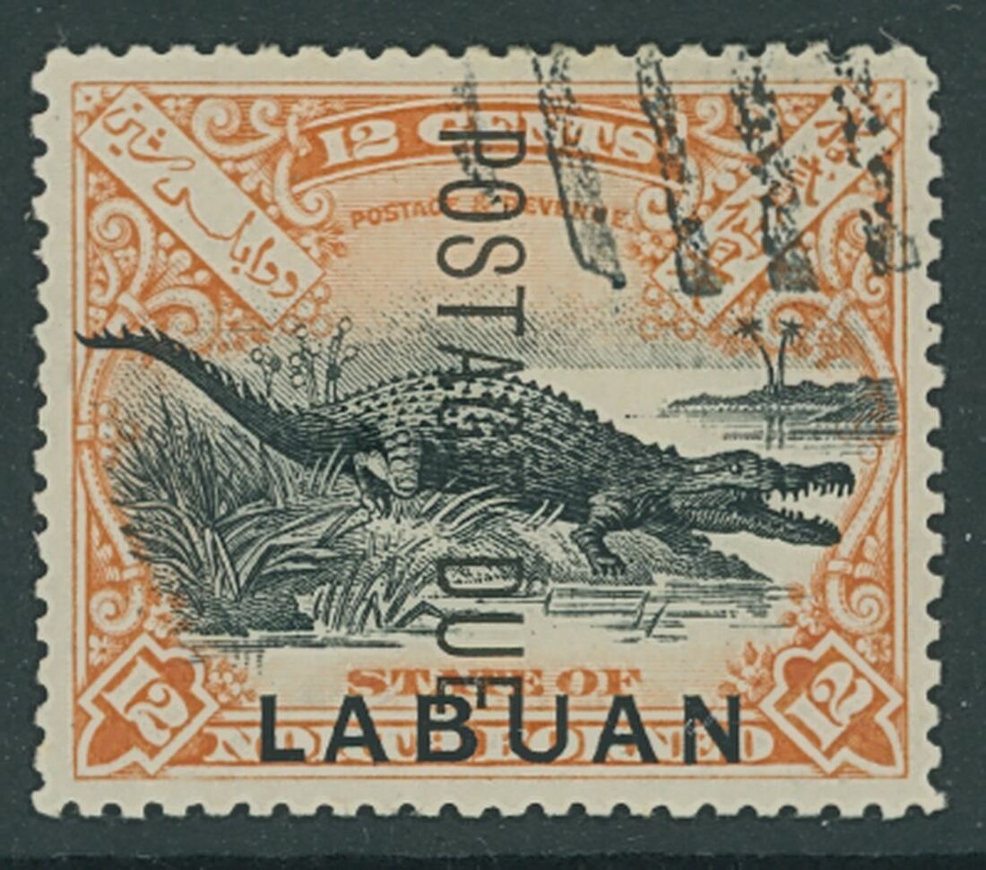 12c. black and vermilion with overprint reading downwards, neatly cancelled-to-order as are all known examples; fine and rare. S.G. D7b, £1,300. Photo