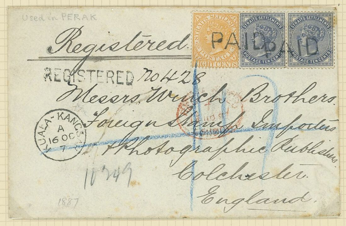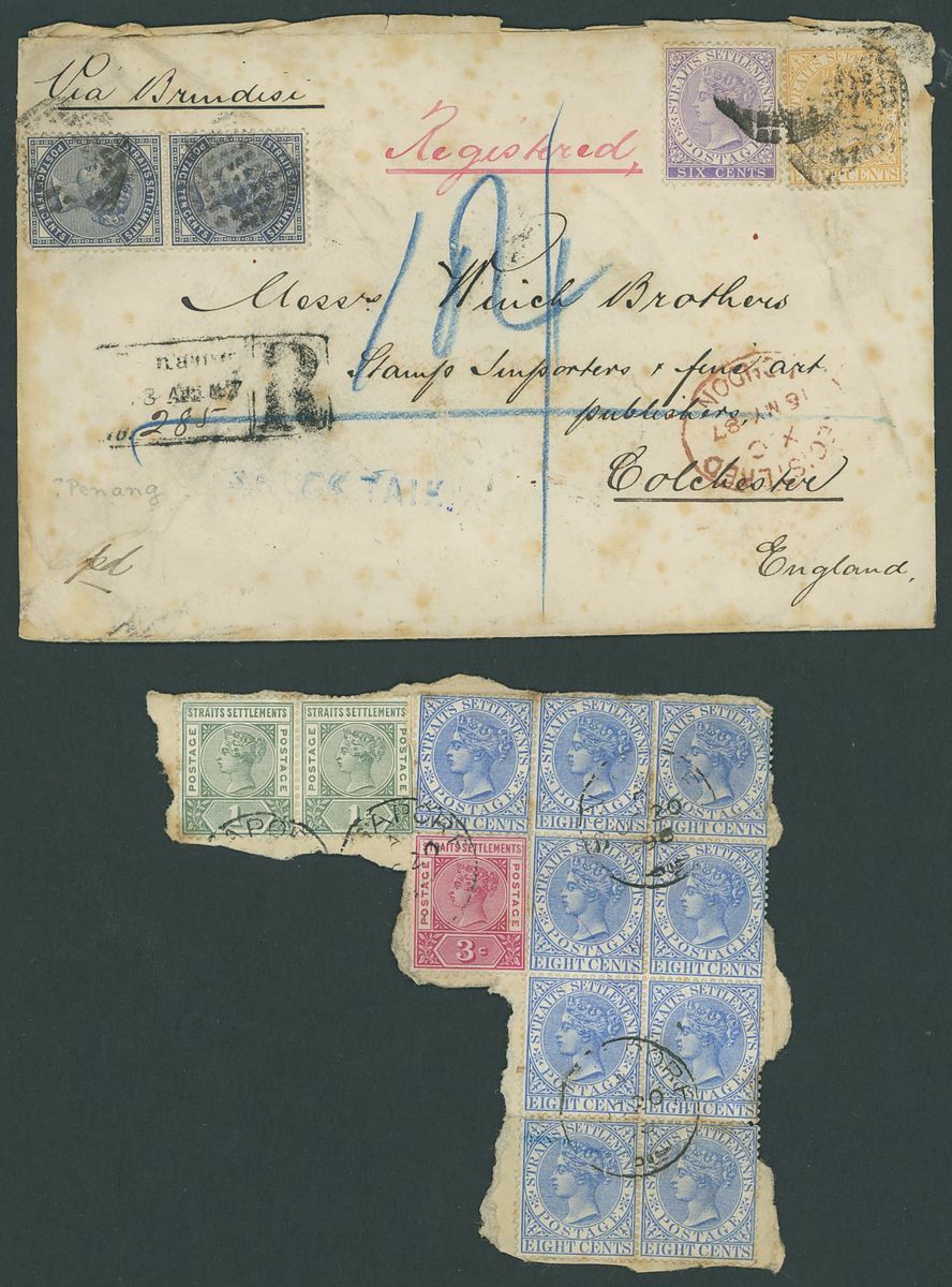 Small selection, including 1887 cover Registered to Colchester franked 1882 8c., 10c. (2) tied by "
