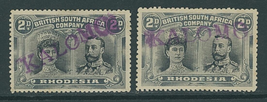 Kalomo: straight-line cancellation in violet, good strikes on 2d. (2); fine and appealing. K10 (very rare). (2). Photo