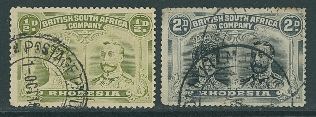 Livingstone: Postage Paid in Cash 1912 (1 Oct.) part strike on ½d., L22 (3 recorded); M.O. Exchange (16 Aug.) on 2d., L23 (unique). (2)