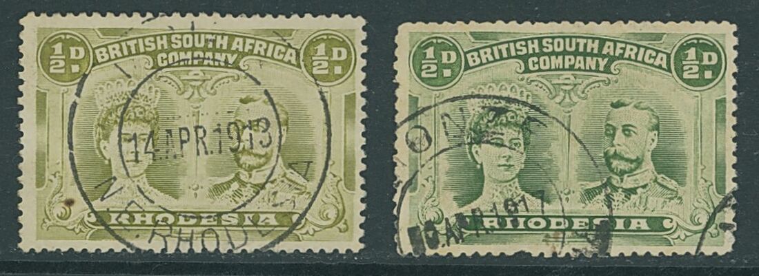 Monze: 1913-17 postmarks on ½d. with 1913 (14 Apr.) with some letters missing from the town name, a neat and central strike, M15A, (extremely rare); 1917 (0 Apr.) blank before day and "0" for day, short perf. at foot, M16 (unique). (2)