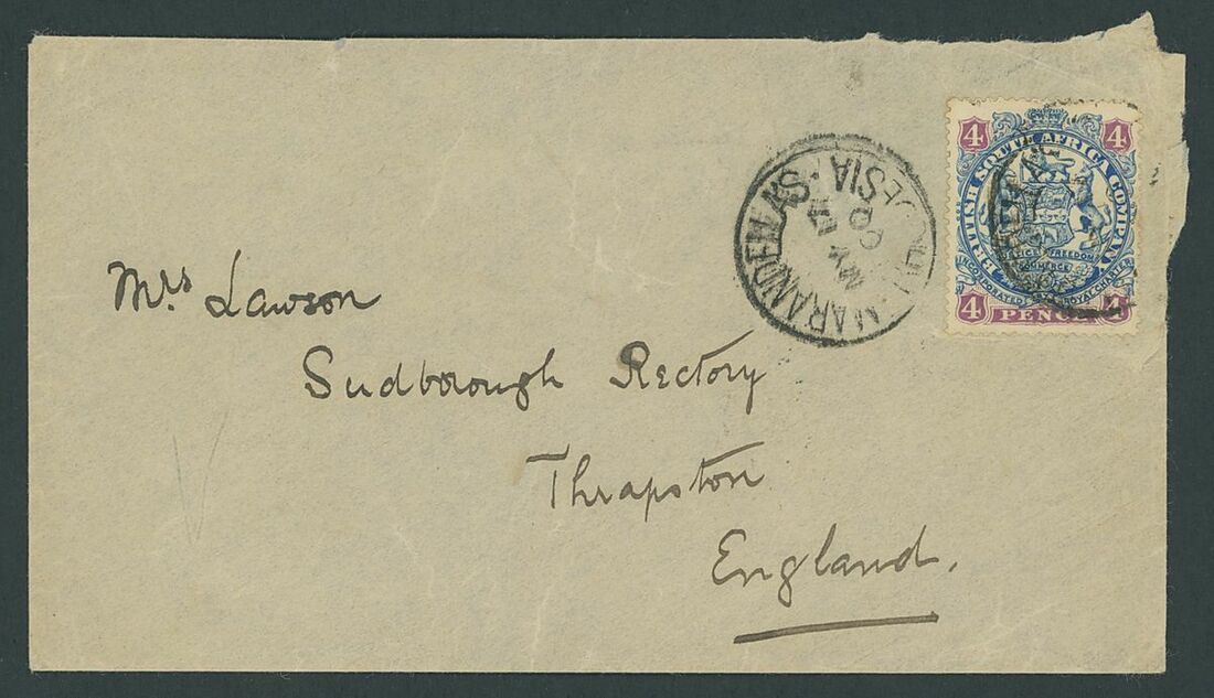 Marandella: 1900 (17 May) envelope to England bearing 1896-97 4d. cancelled by single-circle "