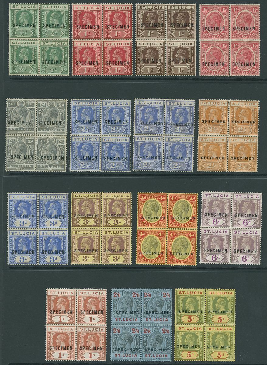 1921-30 Script ½d. to 5/- set of fifteen in rejoined blocks of four, each overprinted