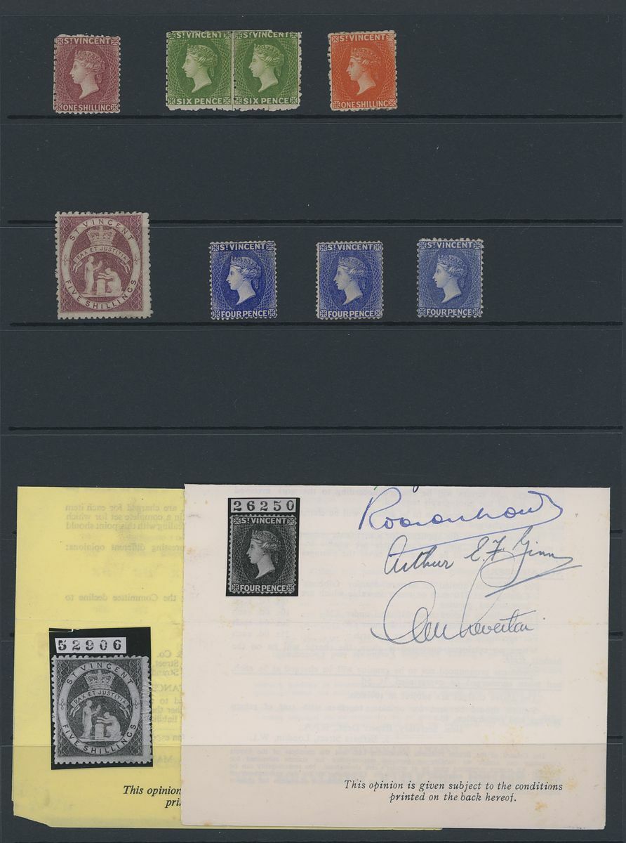 1872-84 small mint group on a Hagner page comprising 1872 perf. 11 to 12½ 1/- deep rose red, 1880 6d. bright green pair, 1880 1/- bright vermilion, 1880 5/- rose-red (BPA cert.), 1882-83 perf. 14 4d. ultramarine with watermark reversed (2, one with BPA cert.) and 4d. ultramarine-grey; good to fine mint