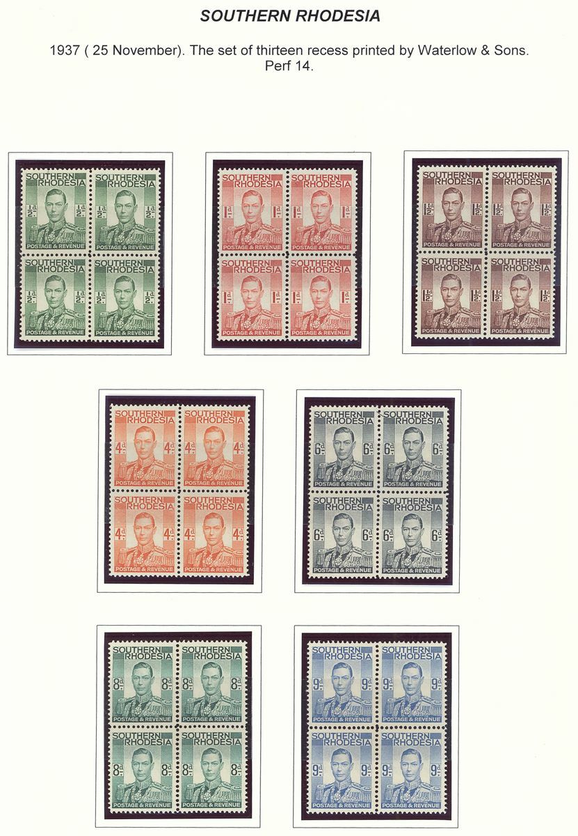 1932-37 mint group comprising 1932 2d. green and chocolate block of thirty with full imprint, 1937 set of thirteen to 5/- in blocks of four and ½d. interpanneau block of sixty-four and 8d. block of thirty with part imprint; fine unmounted mint. S.G. cat value £900+