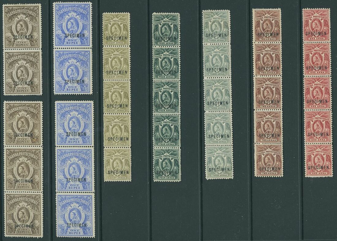 1a. to 5r. set of seven, the anna values in vertical strips of five, the rupee values in vertical strips of three and pairs, each overprinted "