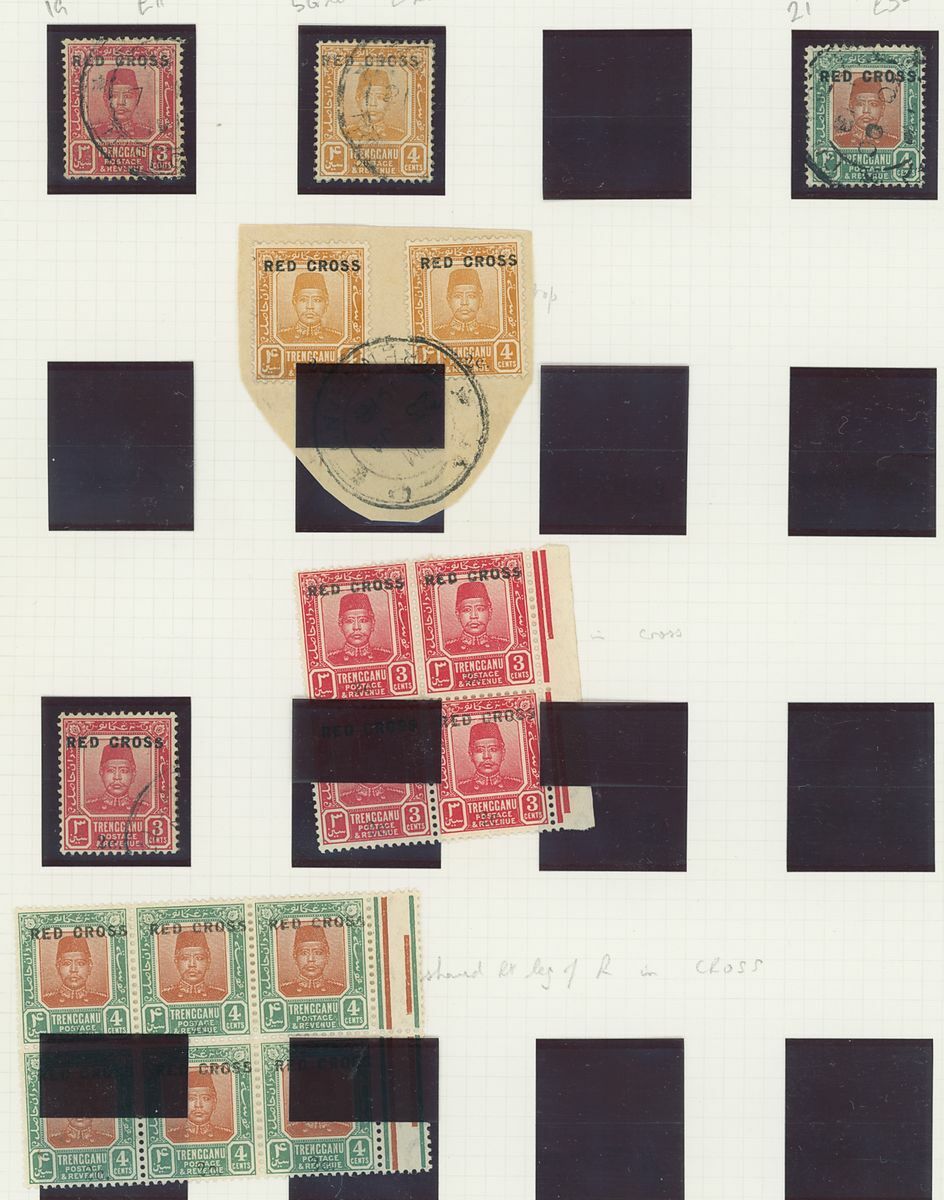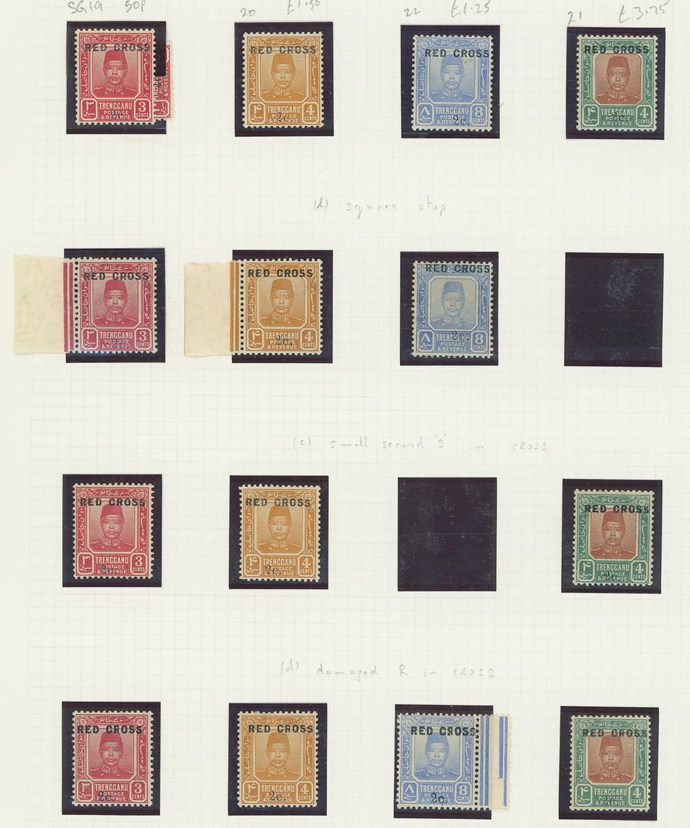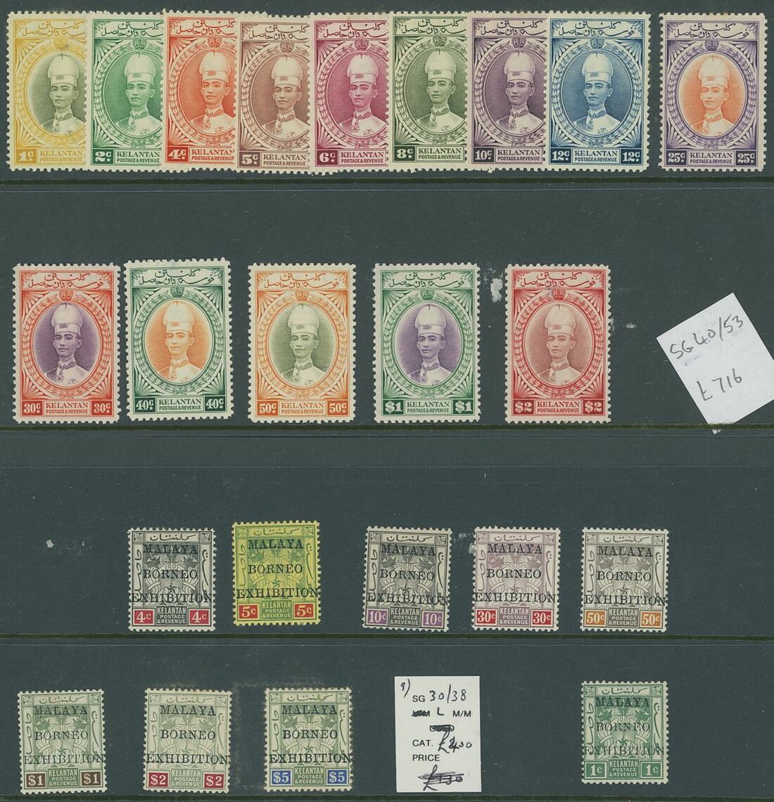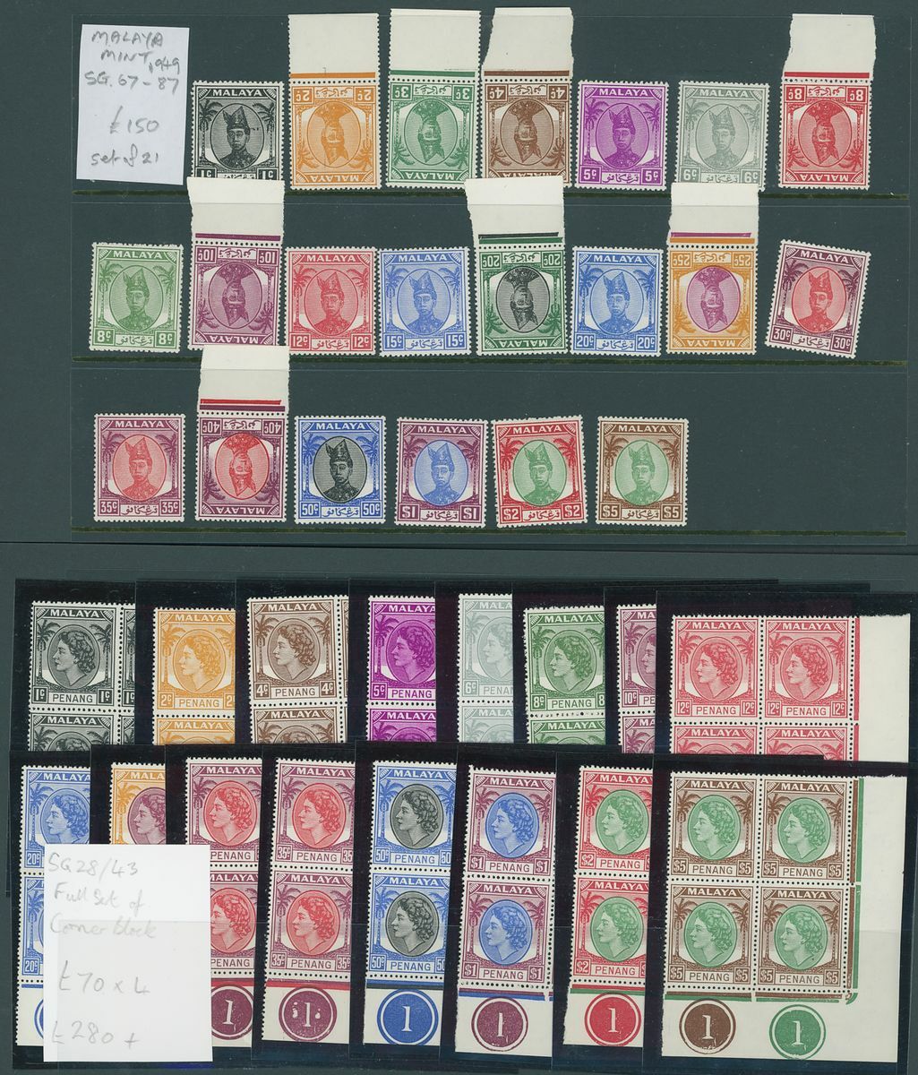 Mint and used selection arranged on thirteen stockcards and fifteen pages including India 1866 6a. (3) used, Negri Sembilan 1895-99 to 50c. mint, 1935-41 6c. scarlet variety stop omitted at right used, Kelantan 1937-40 to $2 mint, Trengganu 1917-18 Red Cross selection on pages. Mixed condition, a good lot for ebayer or retailer.