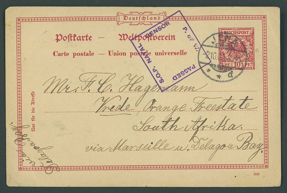 1898-1913 Southern Africa postal history selection (58) including items from St. Helena, Cape of Good Hope, Natal, Transvaal, Great Britain used for field forces, Boer war, censored, P.O.W., incoming mails, tax markings and postage due, T.P.O. etc. with local and abroad destinations, mixed condition, an interesting lot for the expert of the area.