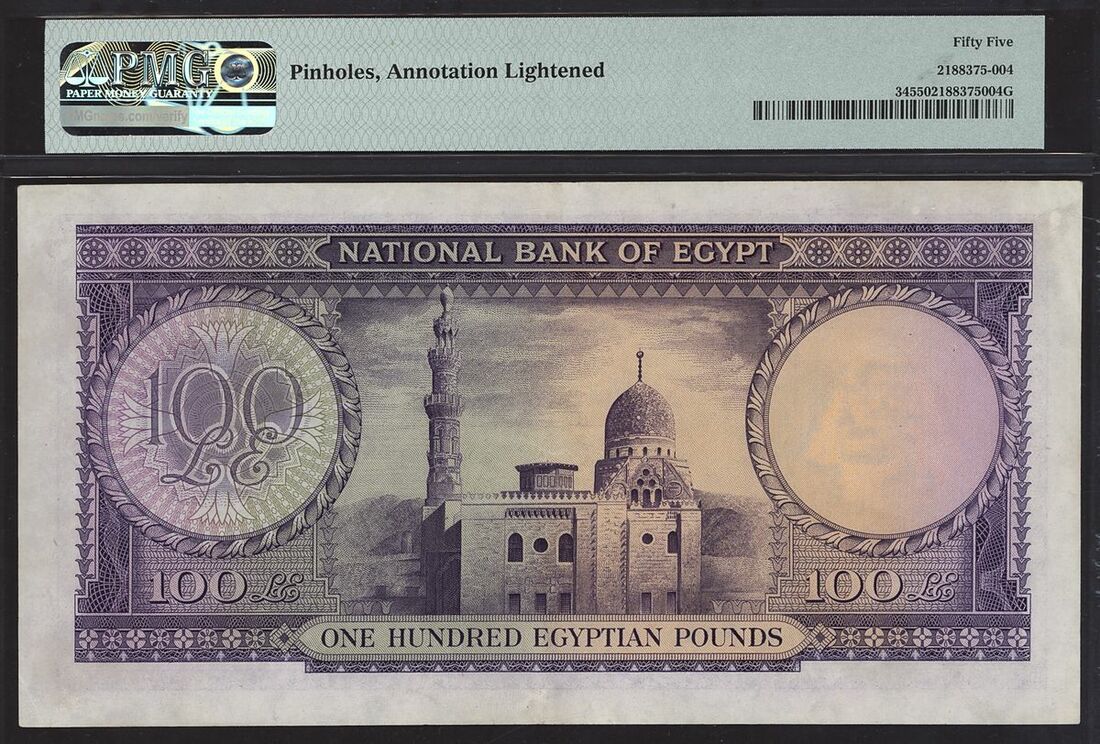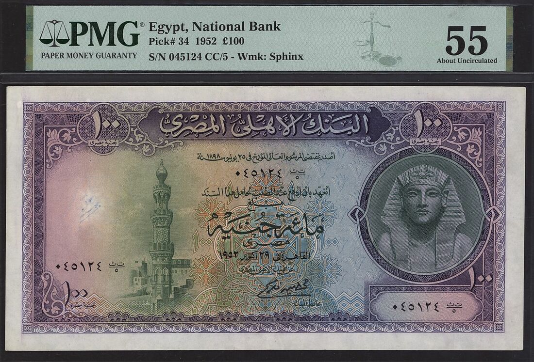 (x) National Bank of Egypt, £100, 1952, serial number 045124 CC/5, (Pick 34, BNB 134), in PMG holder 55 About Uncirculated, pinholes, annotation lightened