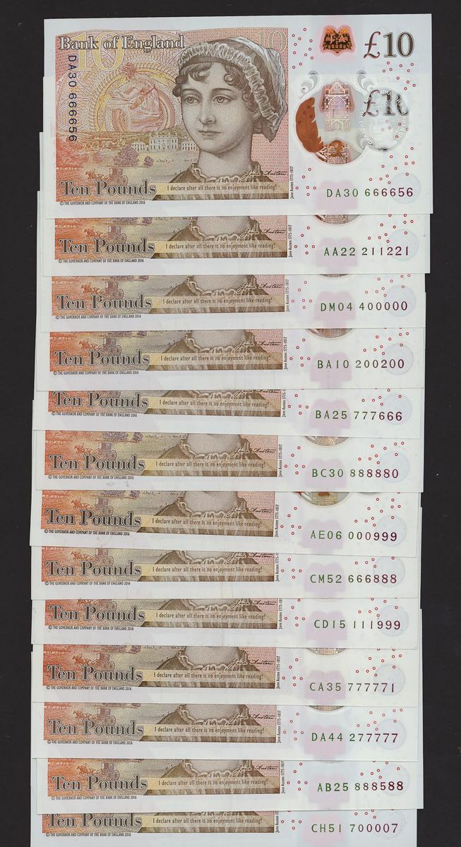 Bank of England, V. M. F. Cleland, group of interesting serial number £10, 2016, (EPM B415), very fine to uncirculated (13 notes)