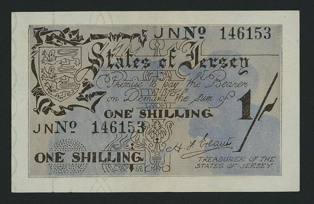 (x) German Occupation WWII / States of Jersey, 1 shilling, ND (1941-42), serial number 146153, (Pick 2a), extremely fine
